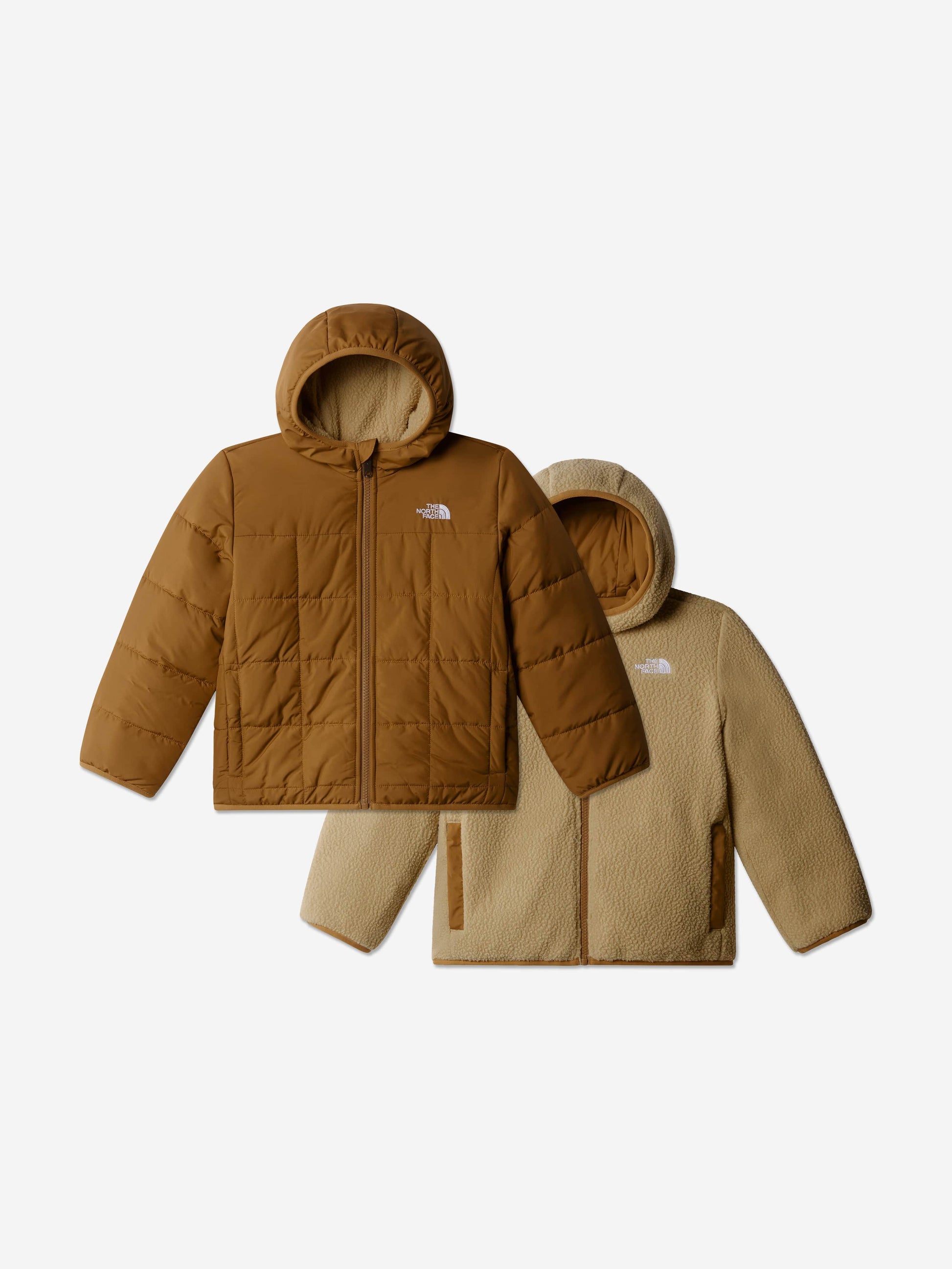 Introducing the Kids Reversible Shasta Hooded Jacket in Brown by The North Face – a luxurious staple for AW2024 that equally serves style and comfort for both boys and girls. Each feature is designed to impress: