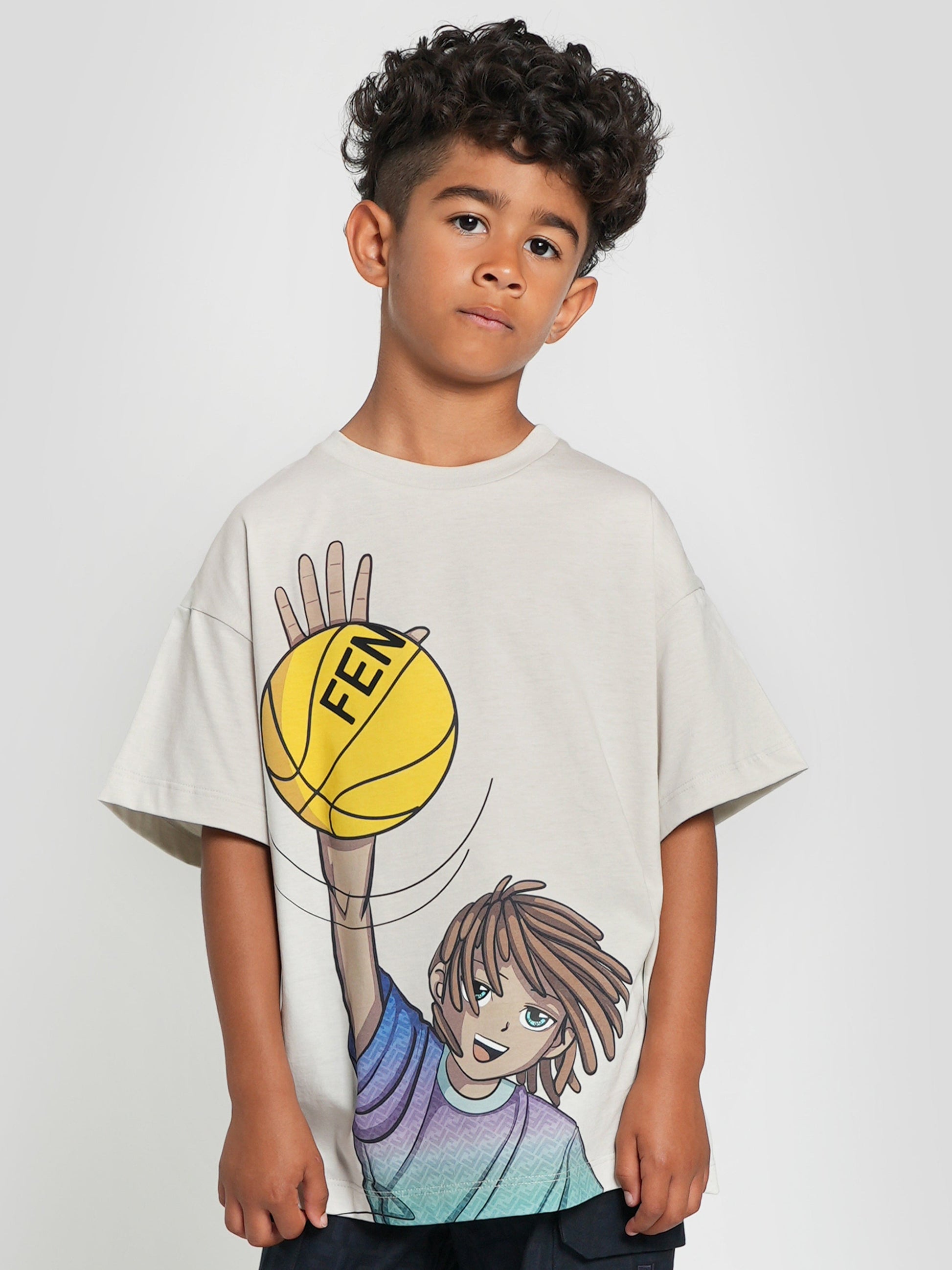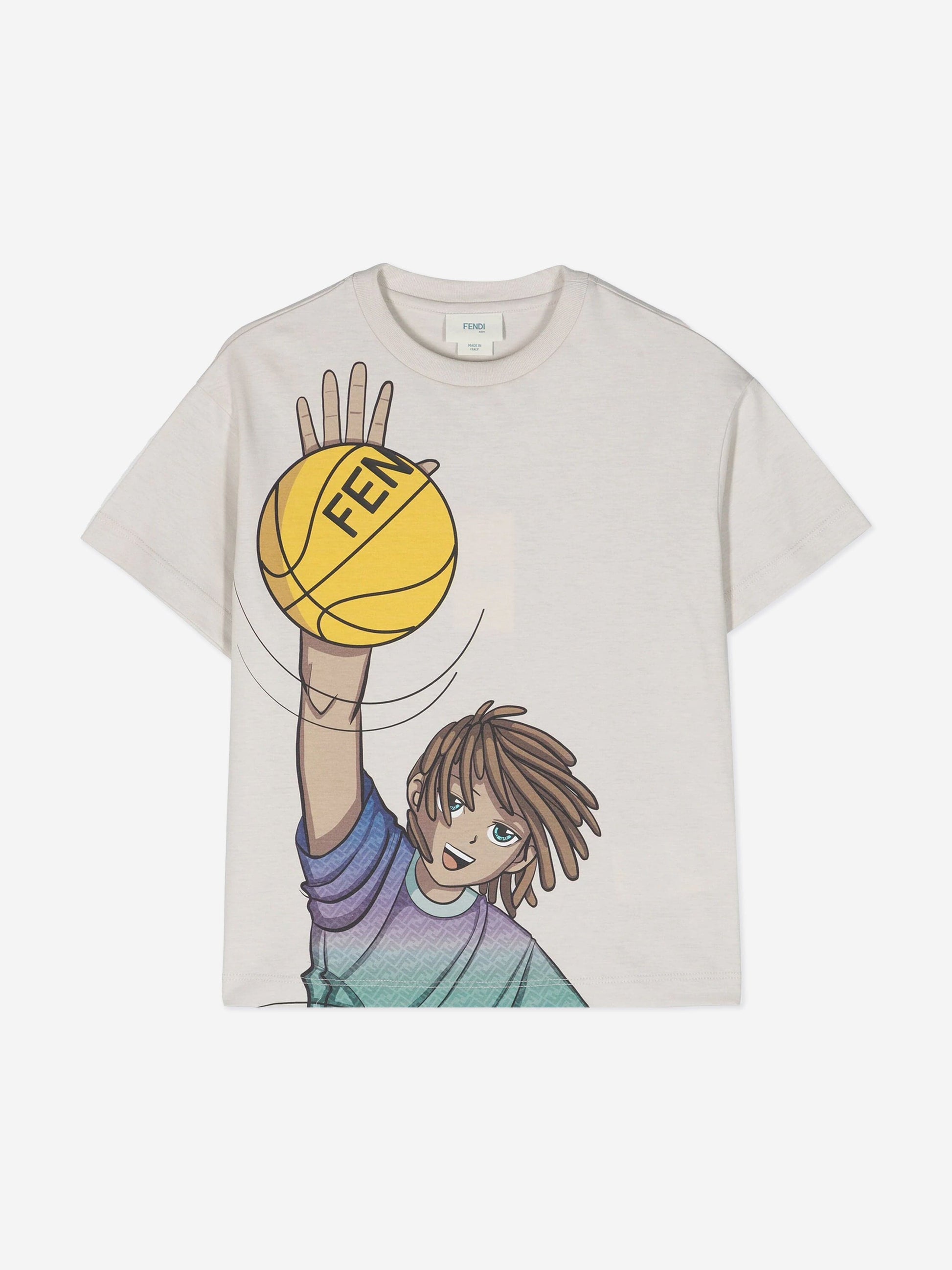 Fendi incorporate the traditional with the modern. This boys short sleeve t-shirt captures the Italian label's reconceptualised outlook on eccentric fashion. Crafted in beautiful cotton jersey with a large, multicolour, manga-themed print on the front.