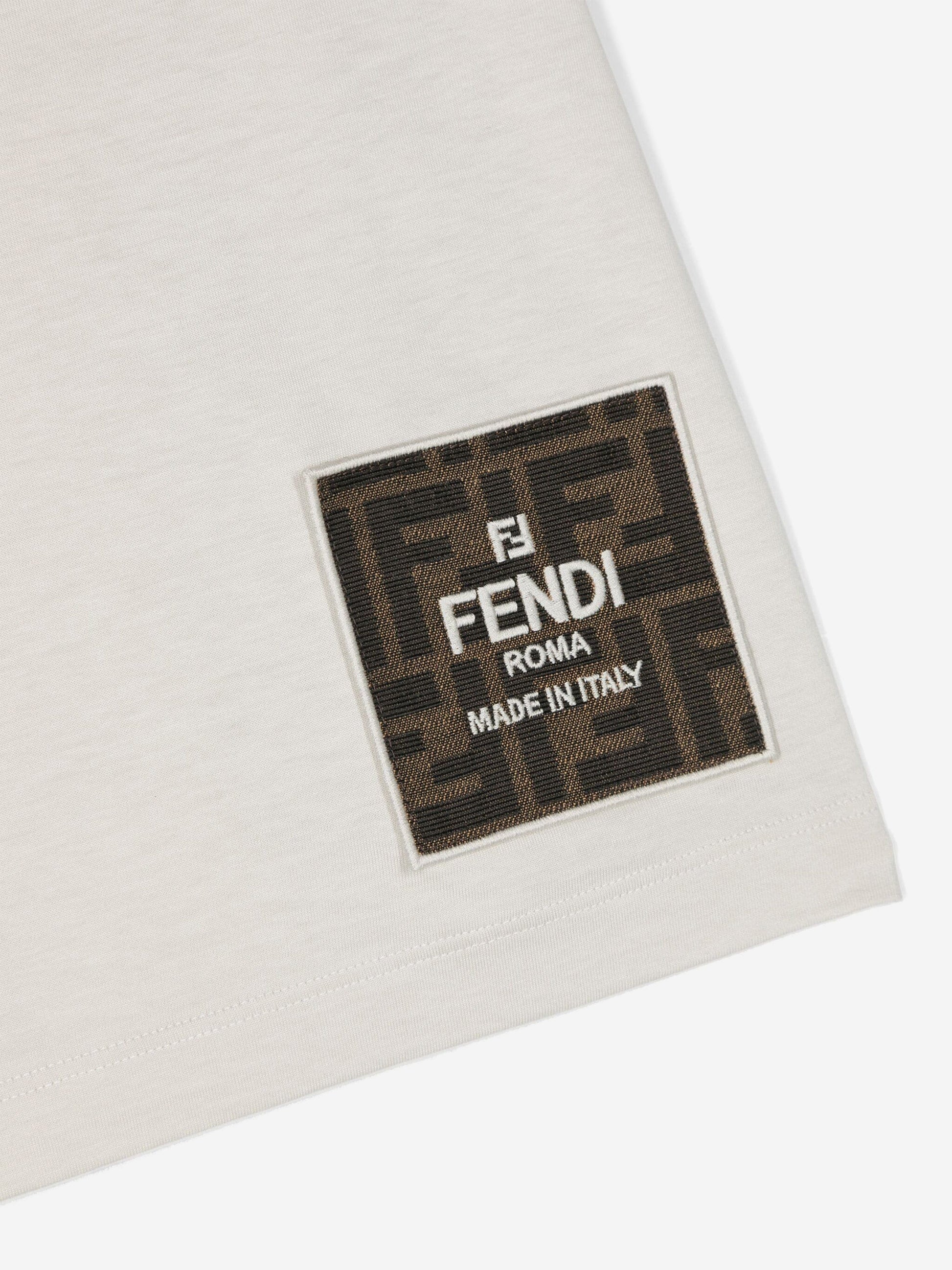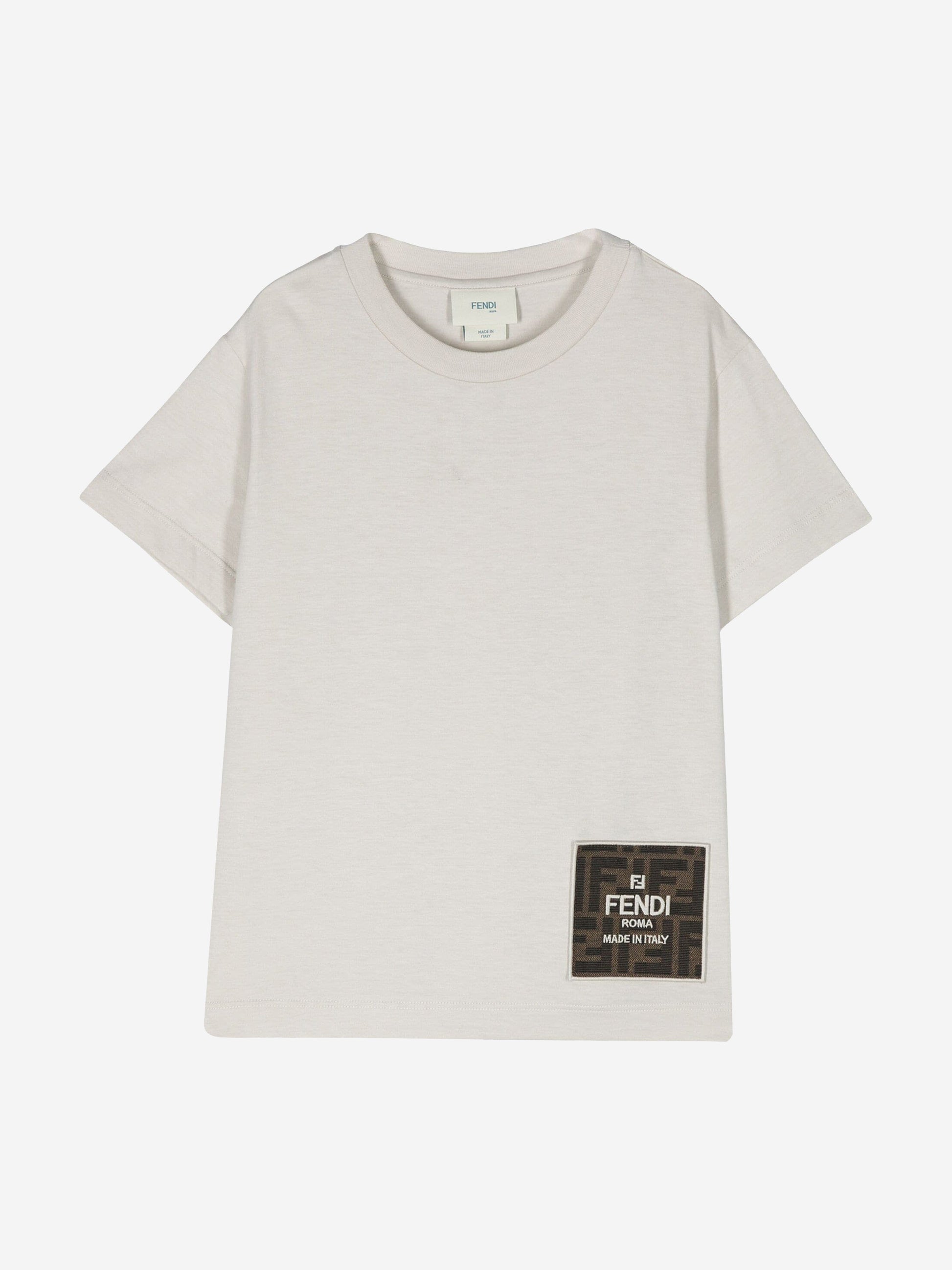 Fendi embody high quality craftsmanship designs with refined elegance. This boys t-shirt amplifies the luxury Italian label's preference for sleek, uncomplicated fashion. Crafted in beautiful high quality cotton with a tobacco-colour logo patch.