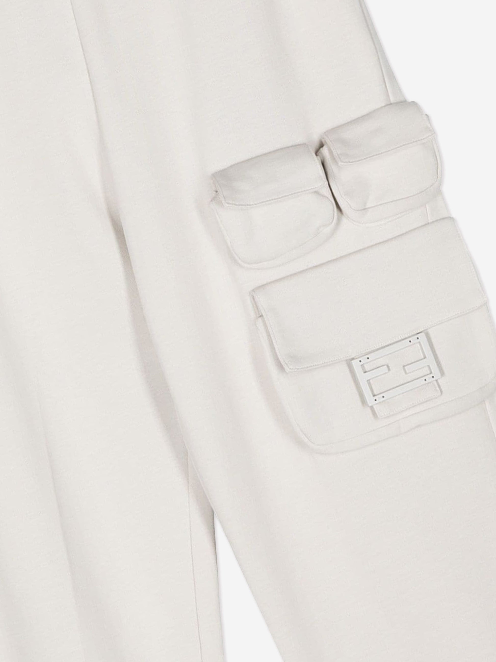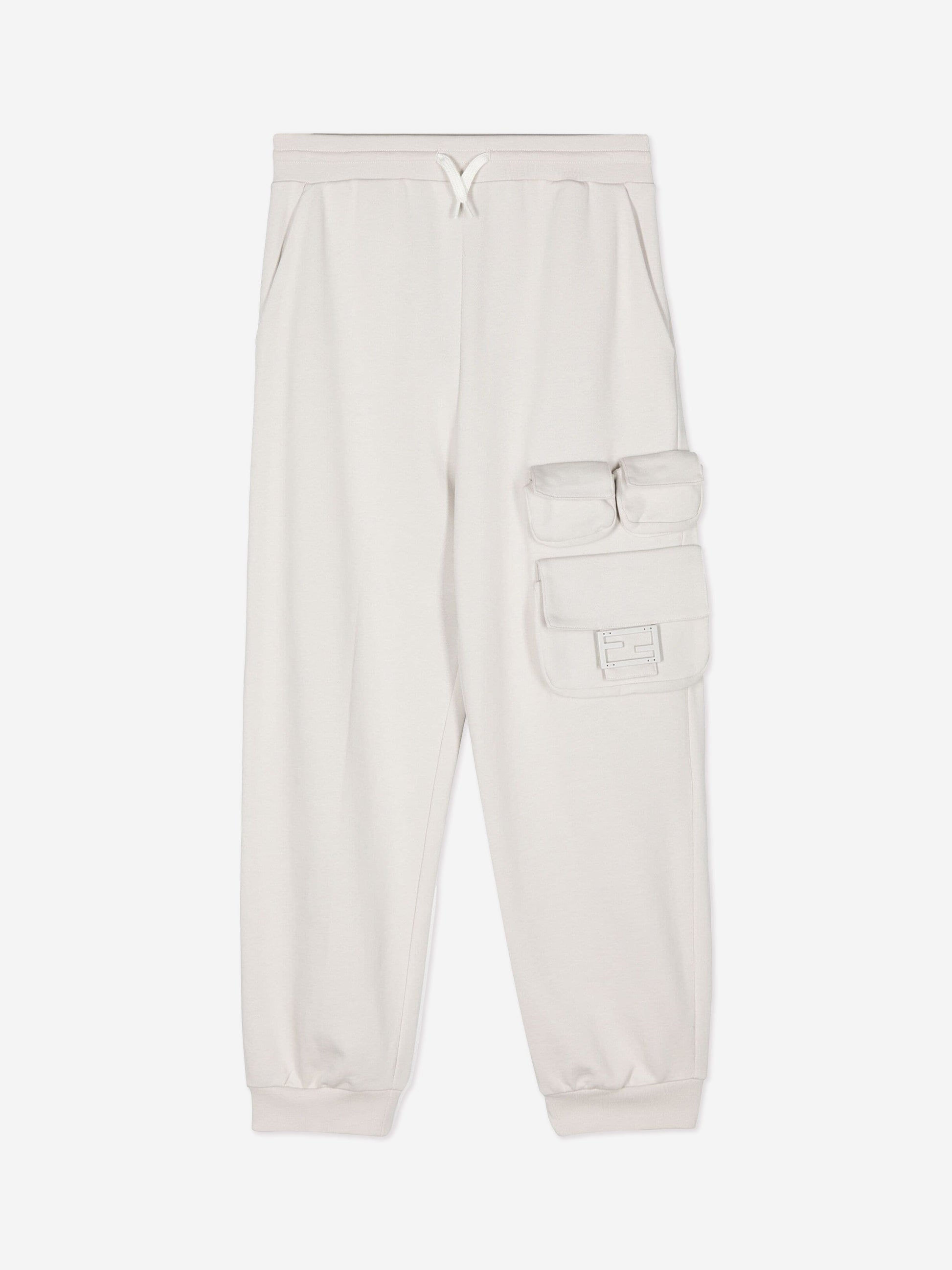 Fendi embody high quality craftsmanship designs with refined elegance. These boys joggers amplify the luxury Italian label's preference for sleek, utilitarian wear. Crafted in clay grey fleece with side pockets and Baguette appliqué.