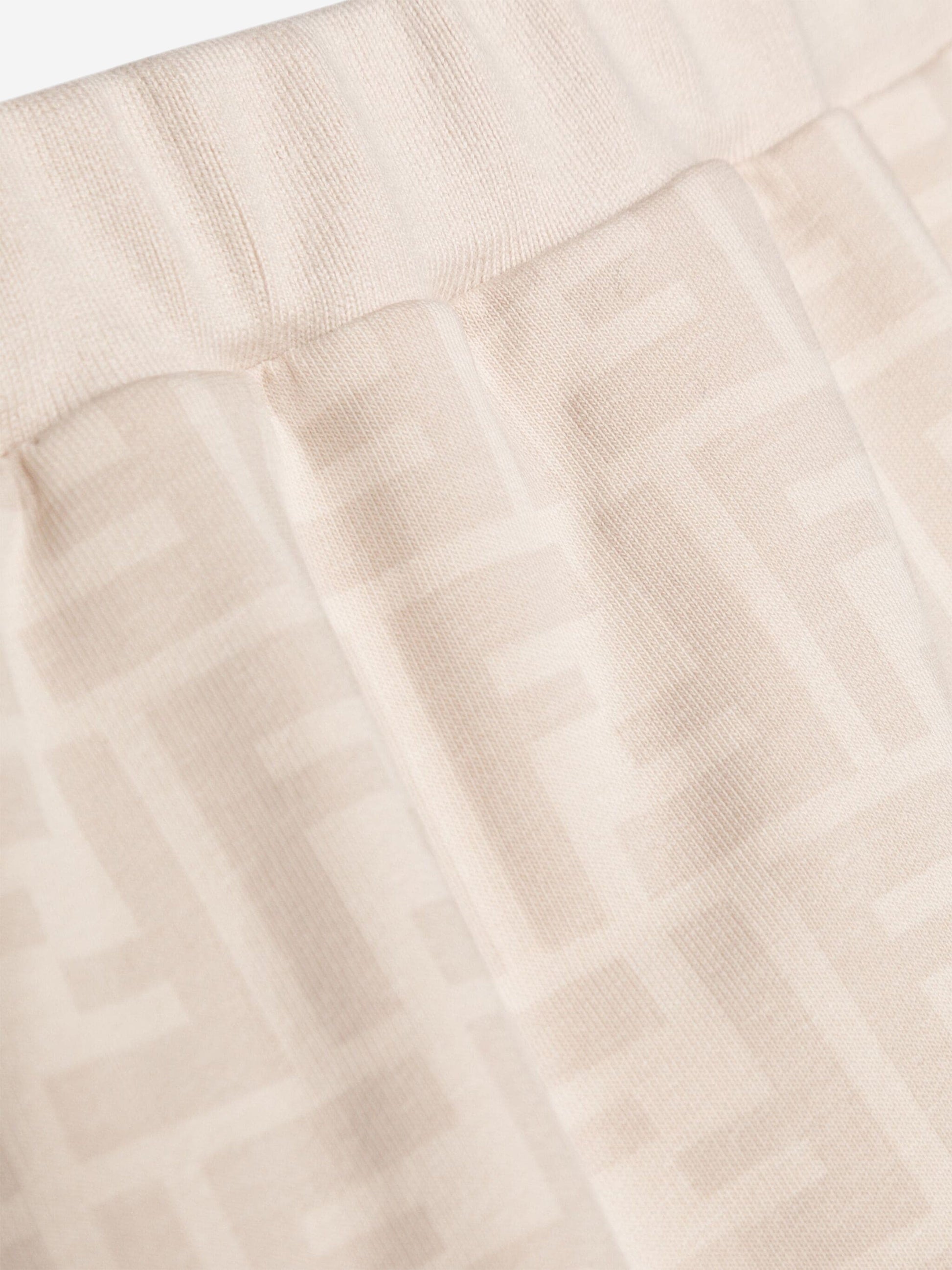 Fendi incorporate the traditional with the modern by reconceptualising utilitarian fashion into innovative abstracts. These baby unisex beige joggers capture the Italian label's passion for beautiful high quality. Crafted in cotton jersey with all-over tone-on-tone FF logo patterning.