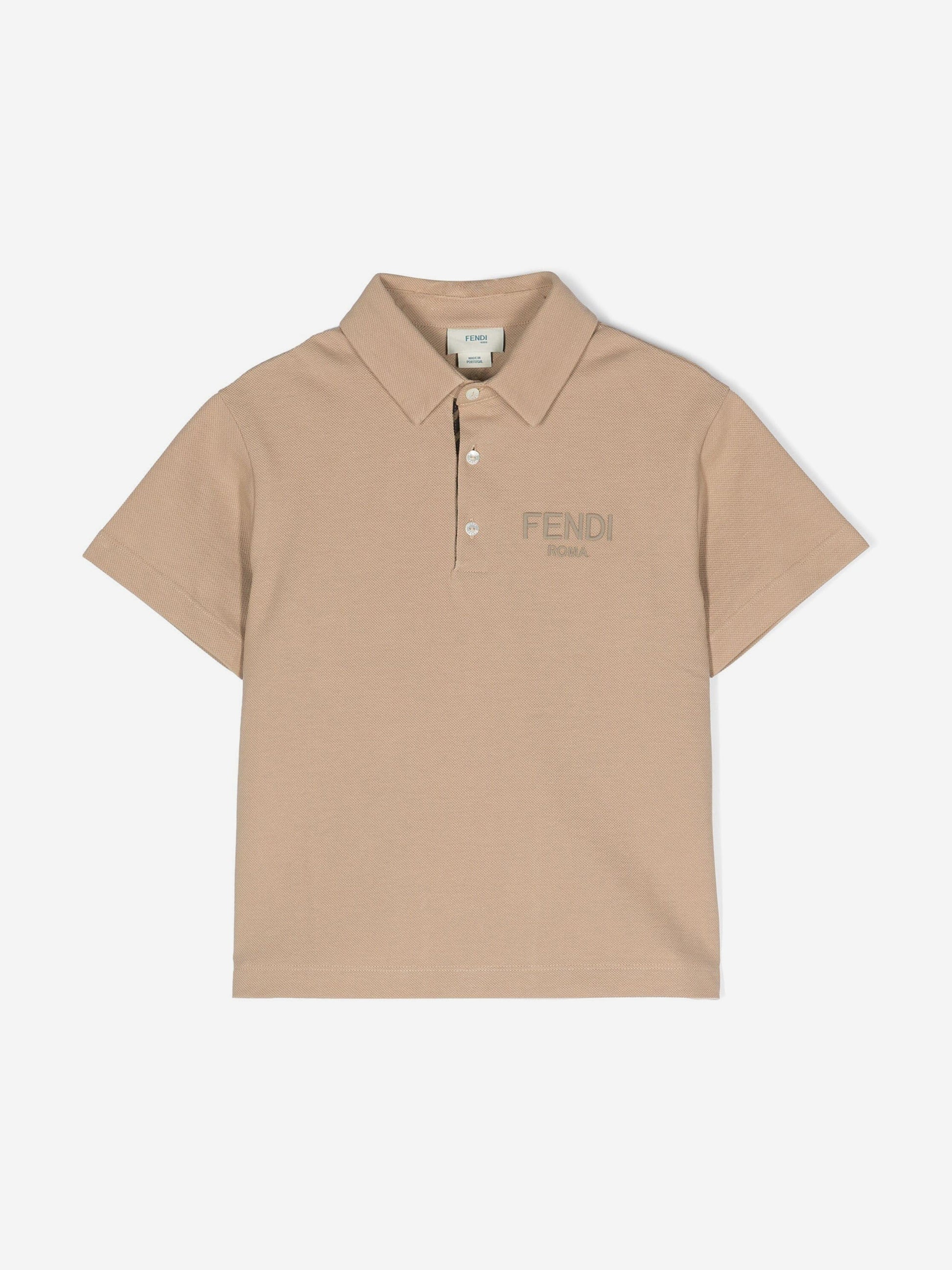 Fendi embody high quality craftsmanship designs with refined elegance. This boys polo shirt is reflective of the label's passion for exquisite, infinite Italian abstracts. Crafted in beige piqué cotton with tone-on-tone Fendi Roma embroidery on the front.