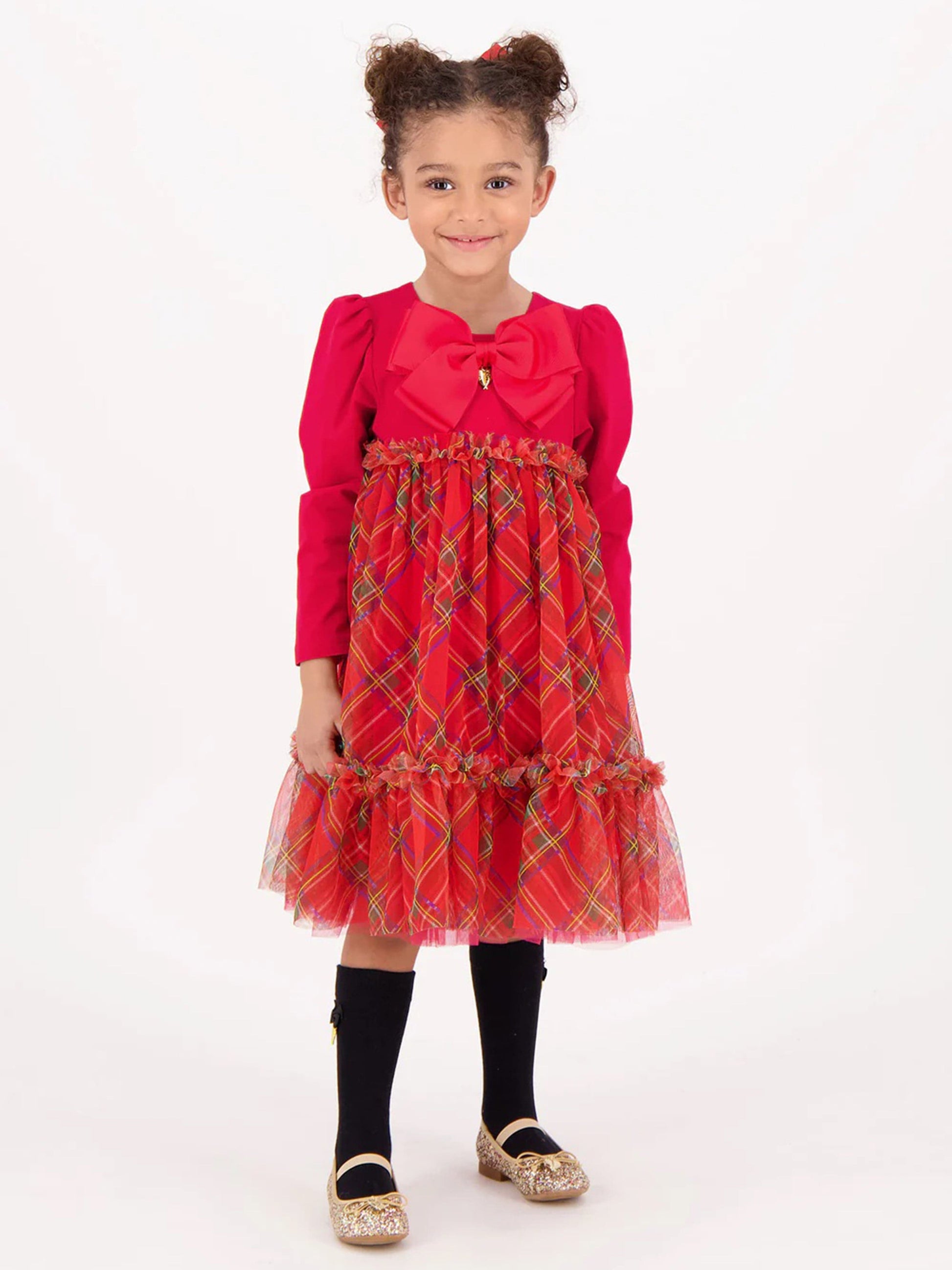 Reinvent her style this season with the Girls Tavia Tartan Dress in Red. Grab this exquisite piece now and watch her dazzle with confidence and grace!