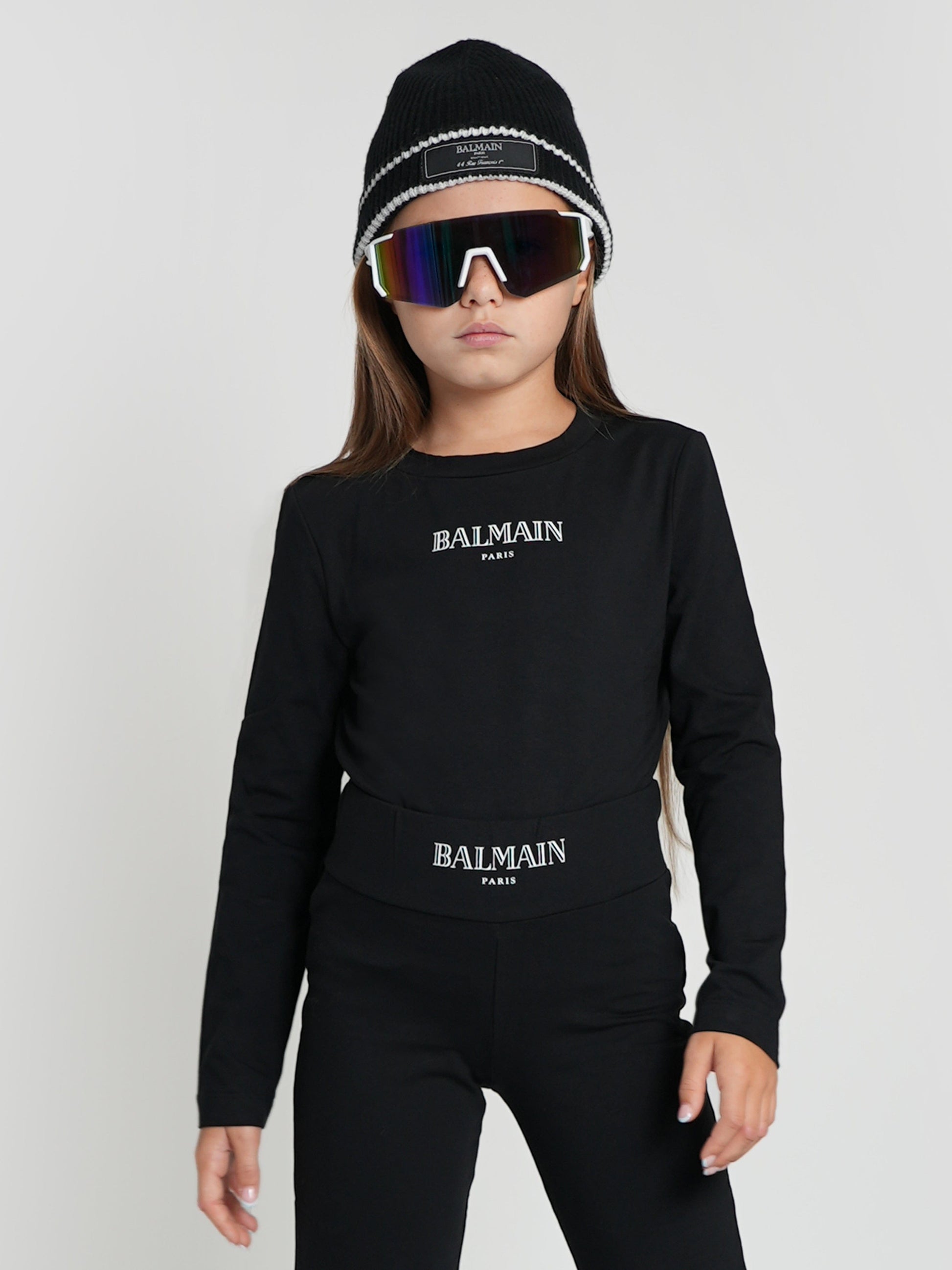 Elevate her wardrobe with the timeless sophistication of Balmain. Order the Girls Logo Bodysuit in Black today!