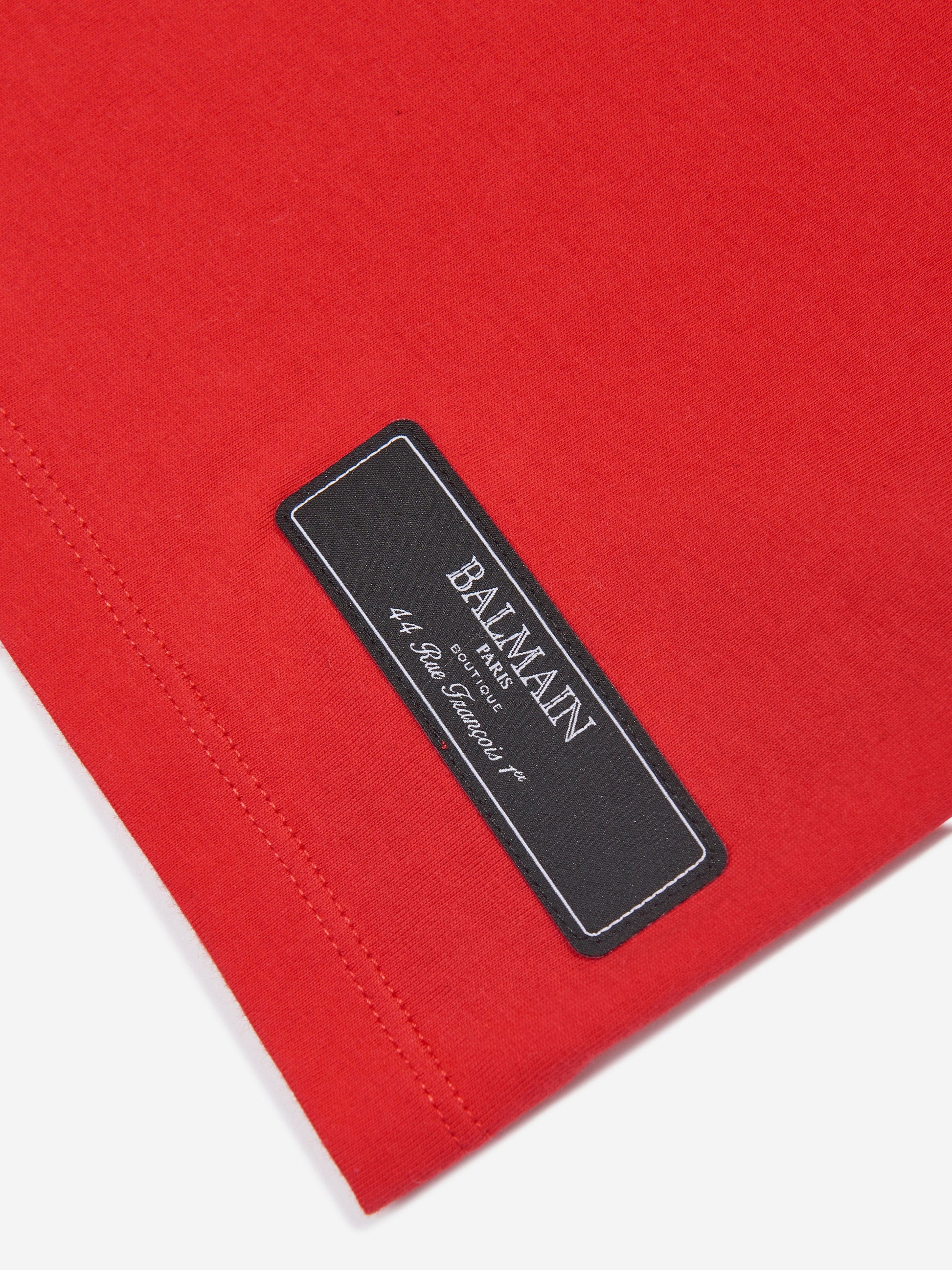 Introducing the Girls Fringed Jersey Dress in Red by Balmain, a captivating addition to any discerning young wardrobe for AW2024. This designer piece effortlessly blends luxury with playful charm. Here are the key features:
