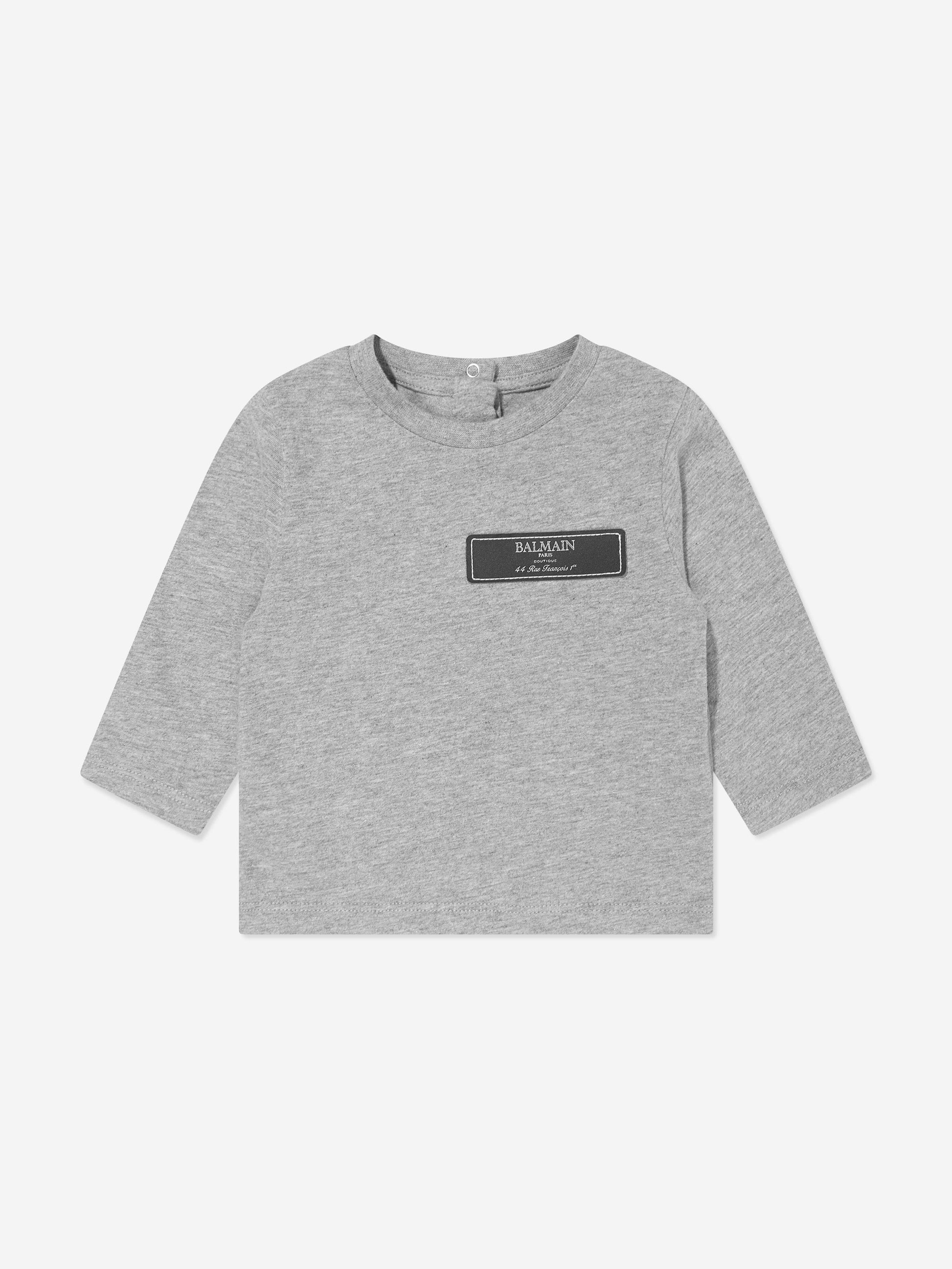 Balmain incorporate sleek, sophisticated silhouettes into their enigmatic abstracts. This baby unisex grey melange long sleeve t-shirt captures the French label's lavish, unparalleled elegance. Envisioned in refined cotton with a 'Balmain Paris Boutique 44 Rue Francois 1ER' embroidered badge and round neck.