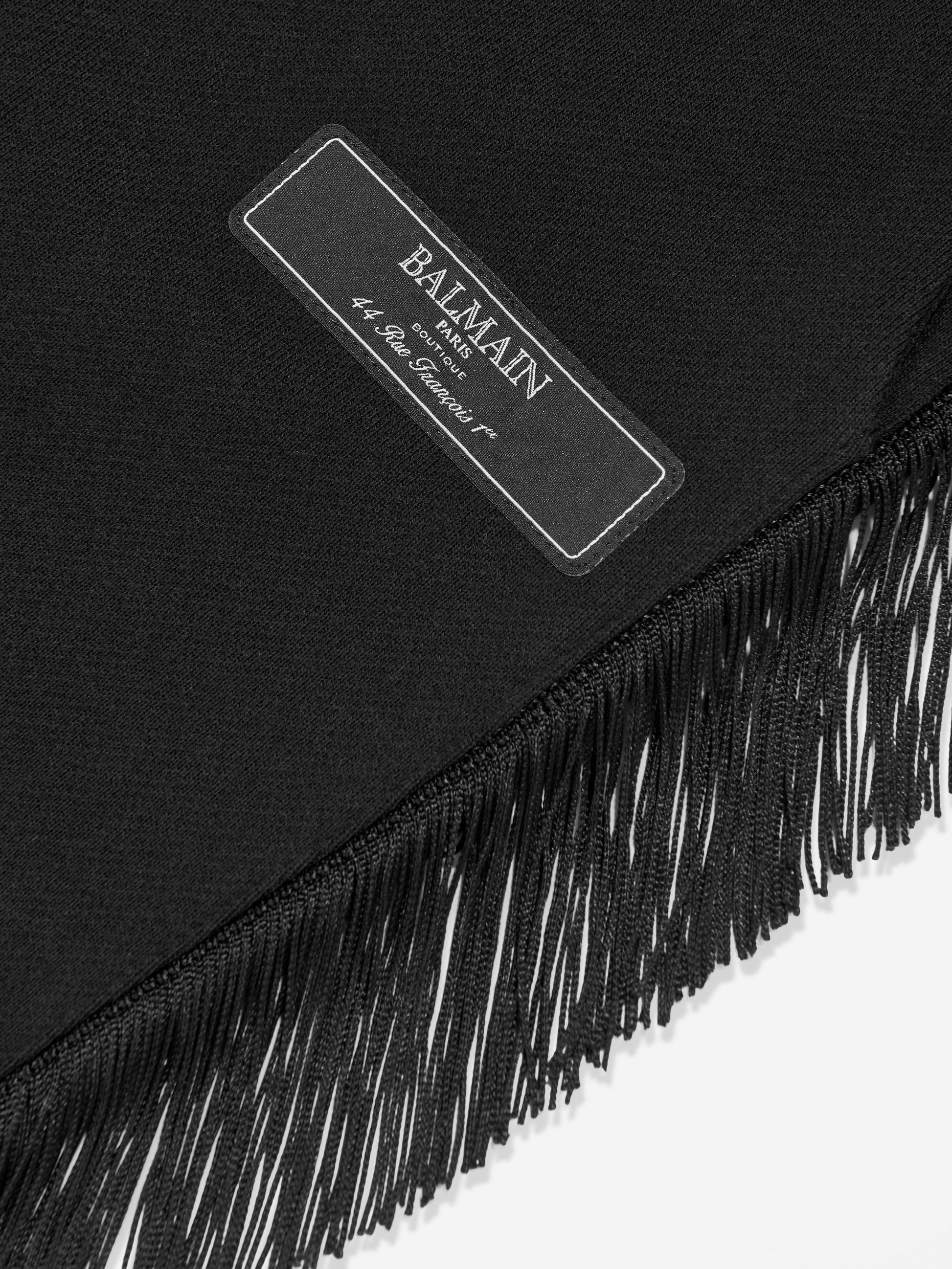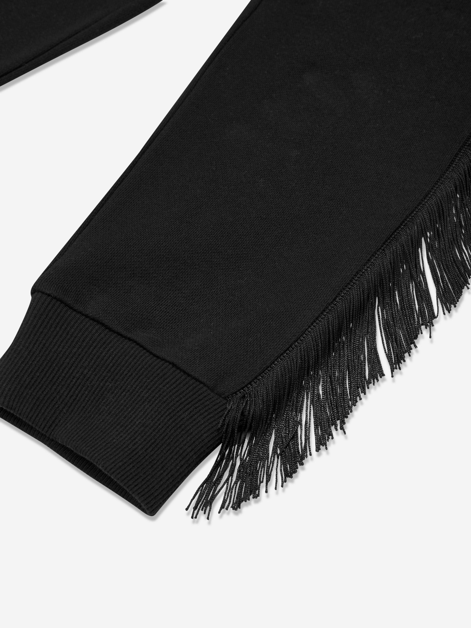Introducing the Balmain Girls Fringed Logo Joggers in classic black, an essential addition to your child's wardrobe for AW2024, blending high-end design with youthful flair. Key highlights include: