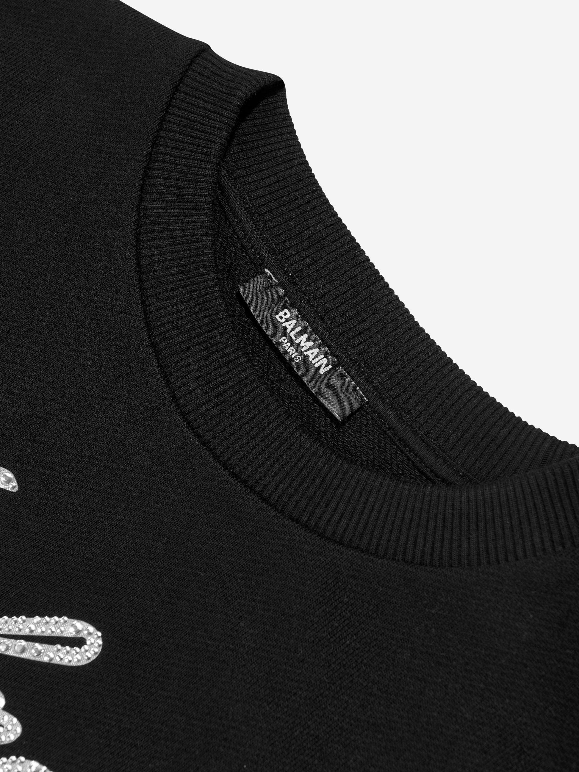Introducing the Girls Paris Logo Sweat Simply exude elegance with Balmain's Girls Paris Logo Sweatshirt in Black—designed with not just aesthetics but also unparalleled comfort. Perfect for AW2024, this timeless piece is an essential in any young lady's wardrobe: