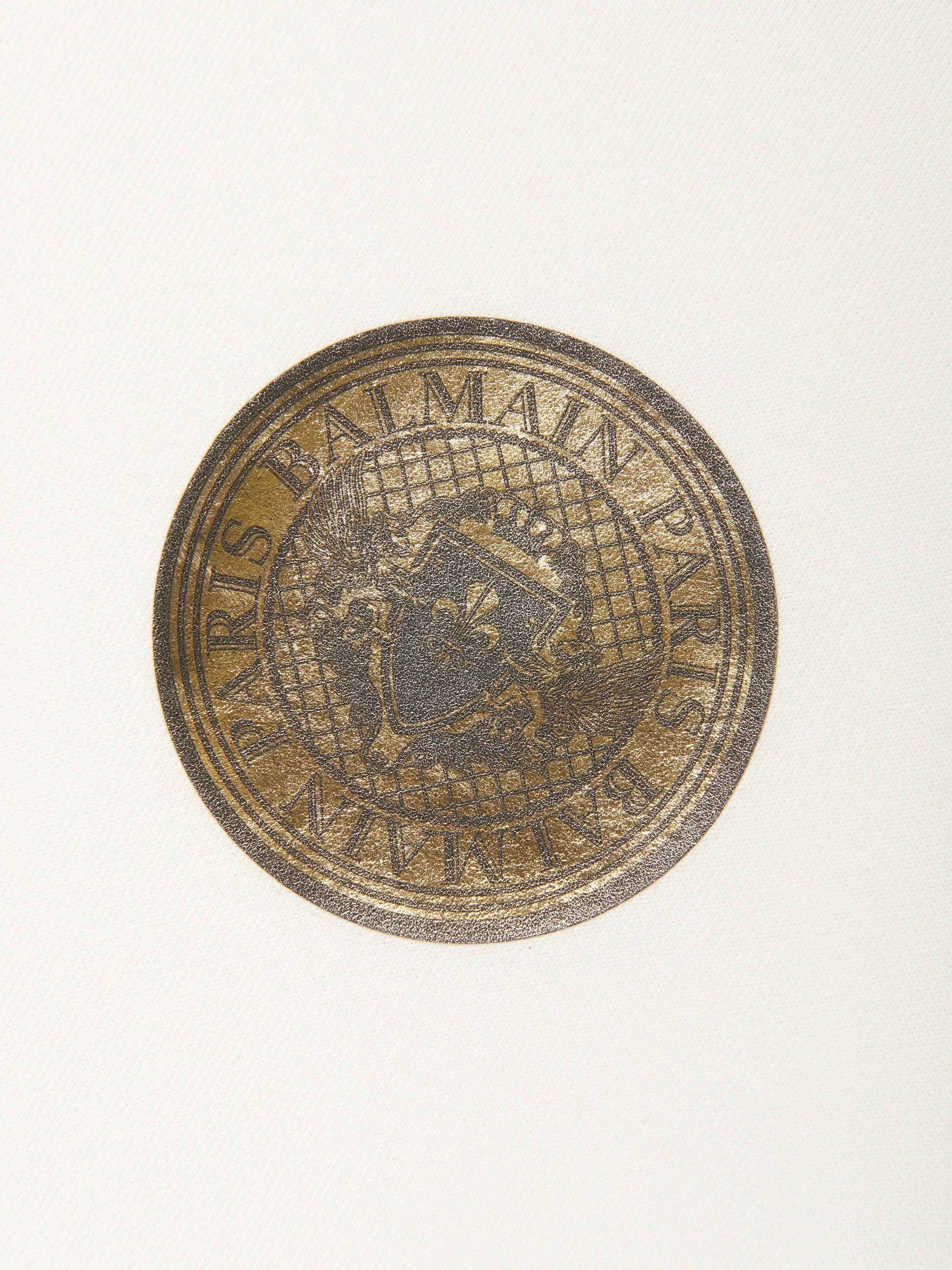 French luxury label Balmain breach the constraints of tradition by exploring new forms of innovation. This unisex ivory sweatshirt embodies original high quality and craftsmanship. Envisioned in cotton jersey with a Balmain Paris golden sphere print. They will embody unparalleled style.