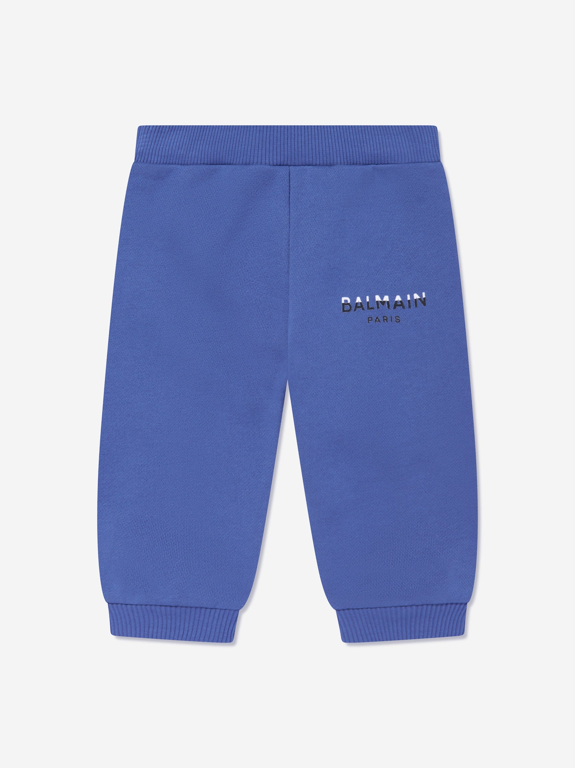 温馨提示:该商品下单后不支持取消订单,请您在购买前确认商品信息无误。商品如有缺货情况,订单会自动取消退款。预计收货时间为1至2周。 French luxury label Balmain breach the constraints of tradition by exploring new forms of innovation. These baby boys blue joggers are depicted in refined cotton jersey and showcase iconic 'Balmain Paris' printing adorned on the side. Both sleek and effortlessly sophisticated, he will be obsessed.