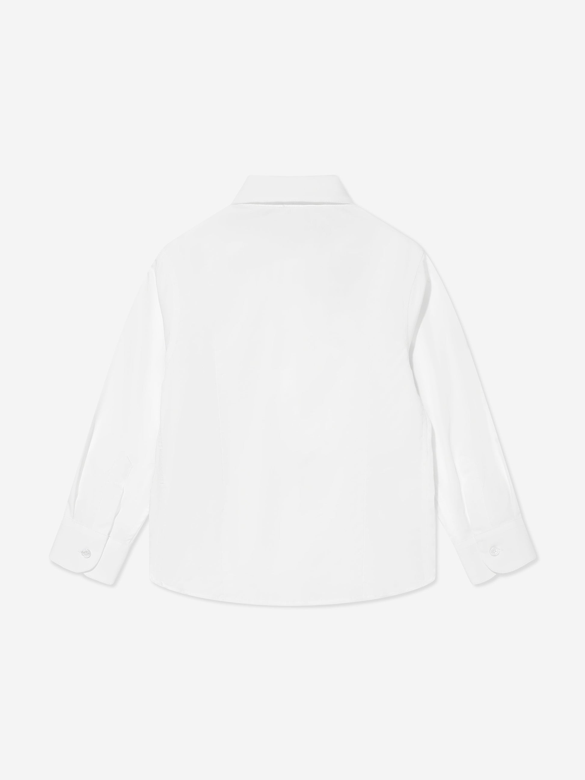 Upgrade your boy's wardrobe with the Balmain Boys Logo Collar Shirt in White, and let him shine with elegance and style this AW2024!