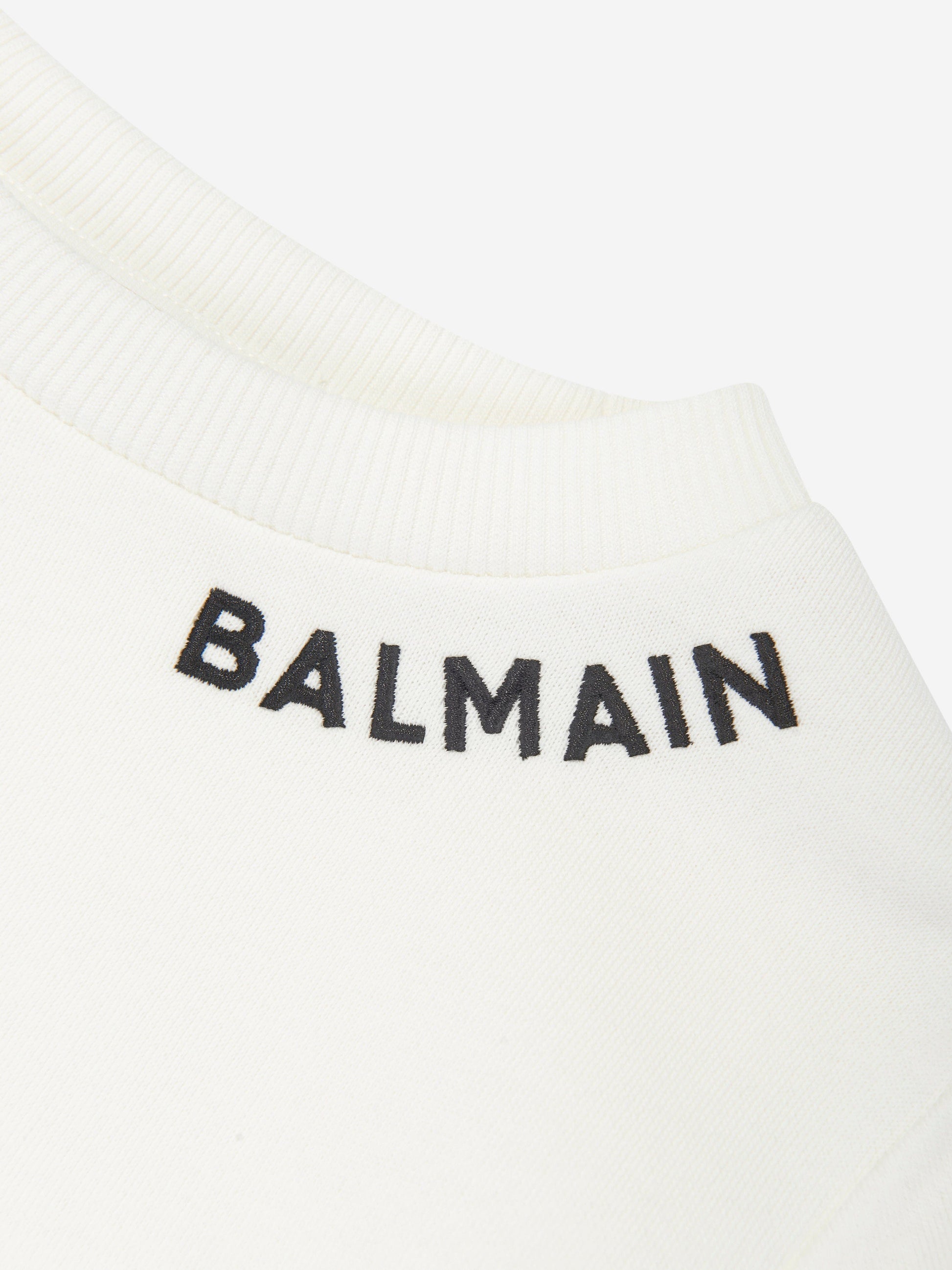 温馨提示:该商品下单后不支持取消订单,请您在购买前确认商品信息无误。商品如有缺货情况,订单会自动取消退款。预计收货时间为1至2周。 Balmain incorporate sleek, sophisticated silhouettes into their enigmatic abstracts. This girls ivory sweater jersey dress is a captivating design for stylish youngsters. Crafted in refined cotton with iconic Balmain detail. She will transcend the streets in unparalleled style.
