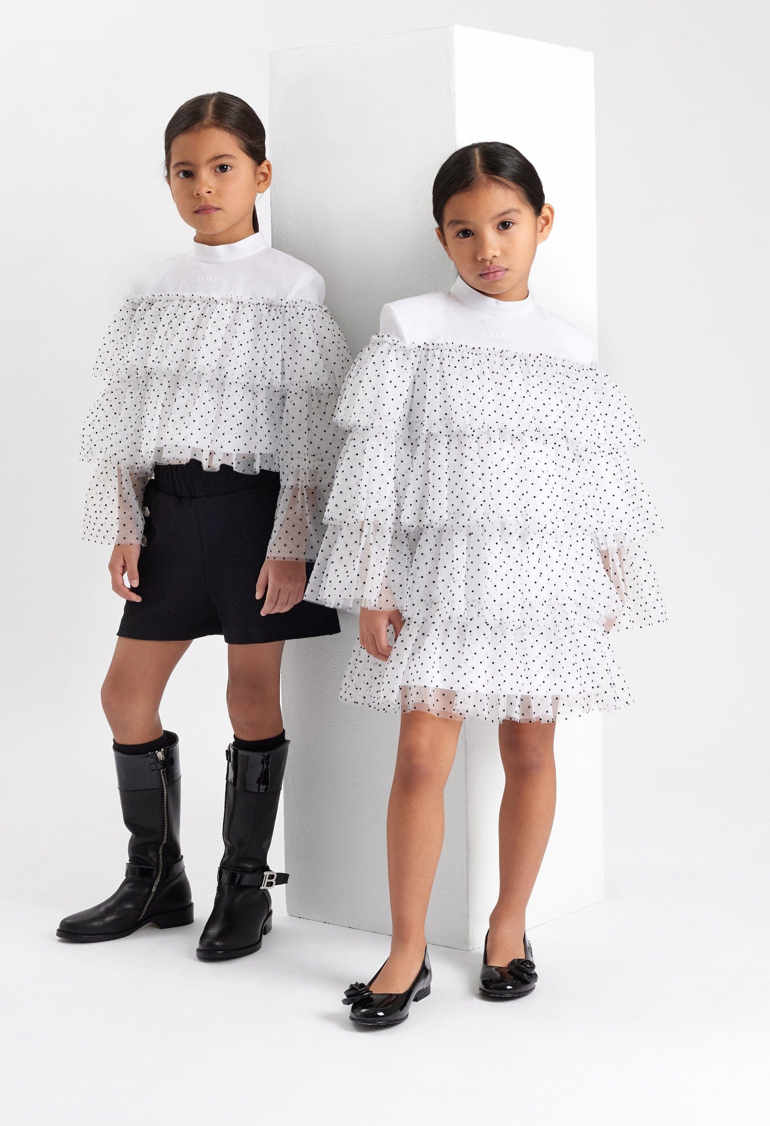 Balmain 女童白色分层薄纱连衣裙
