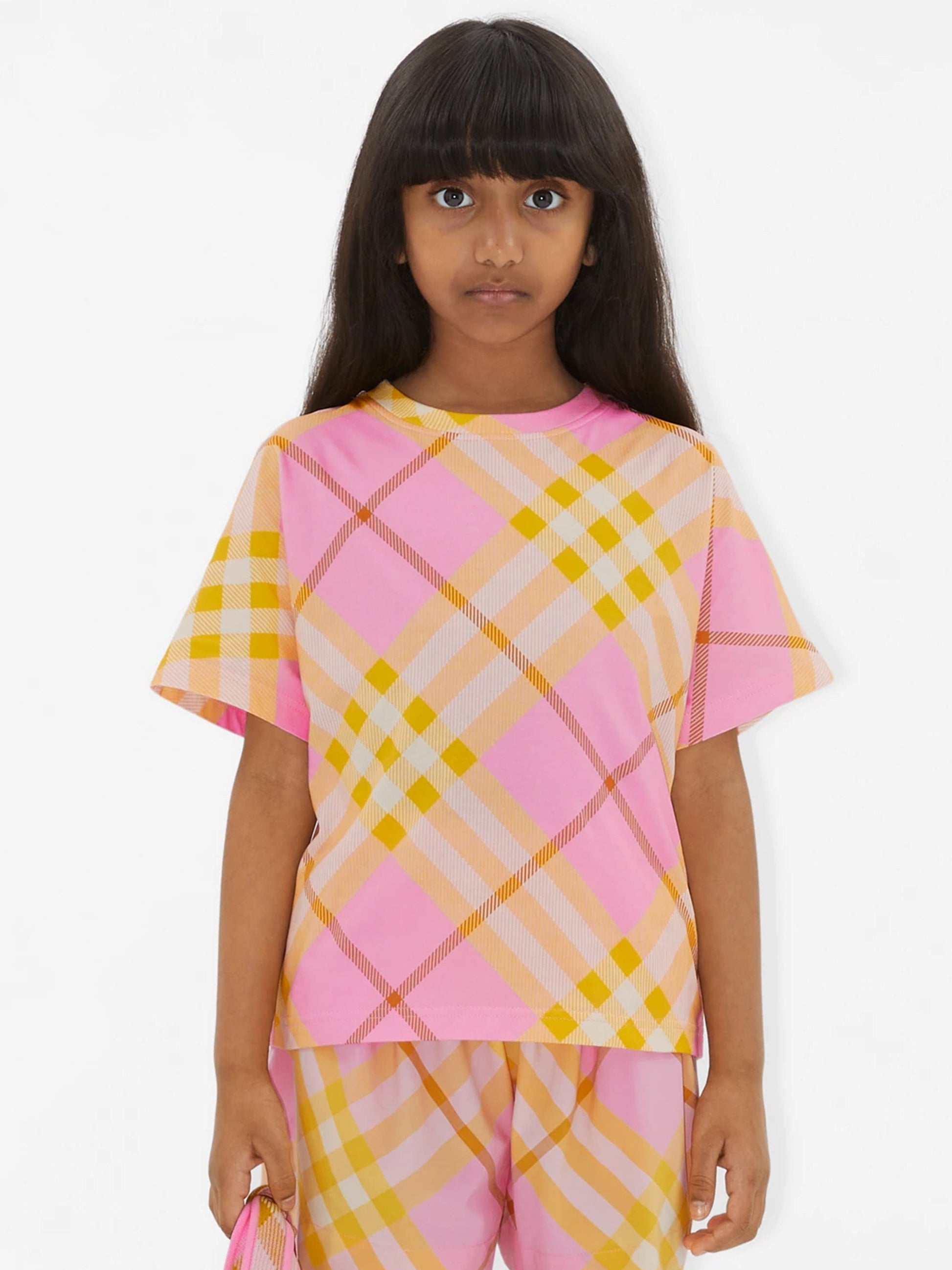 Burberry 女童 Lilia 格纹 T 恤(粉色)