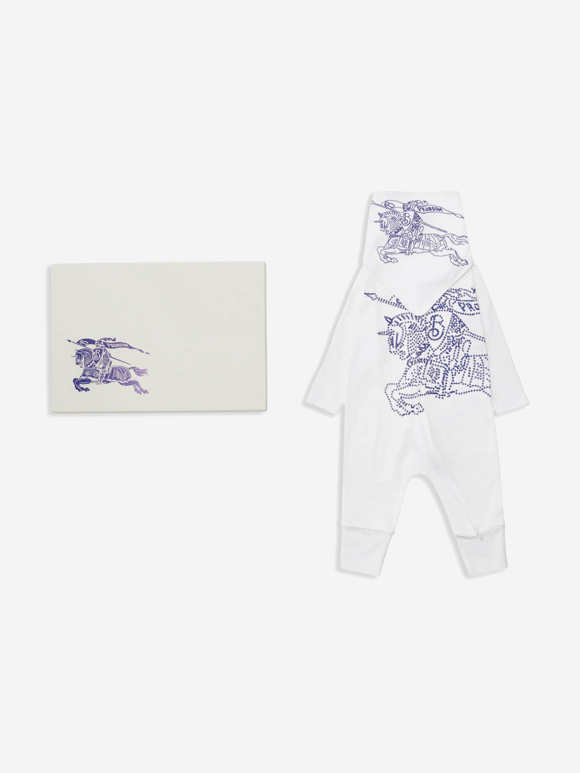 温馨提示:该商品下单后不支持取消订单,请您在购买前确认商品信息无误。商品如有缺货情况,订单会自动取消退款。预计收货时间为1至2周。 Introducing the exquisite Baby Claude XL Romper Gift Set in White by Burberry Kids. Elevate your child's wardrobe with this premium all-white ensemble, perfect for AW2024. Luxuriously designed, every detail caters to comfort and timeless style. Key features include: