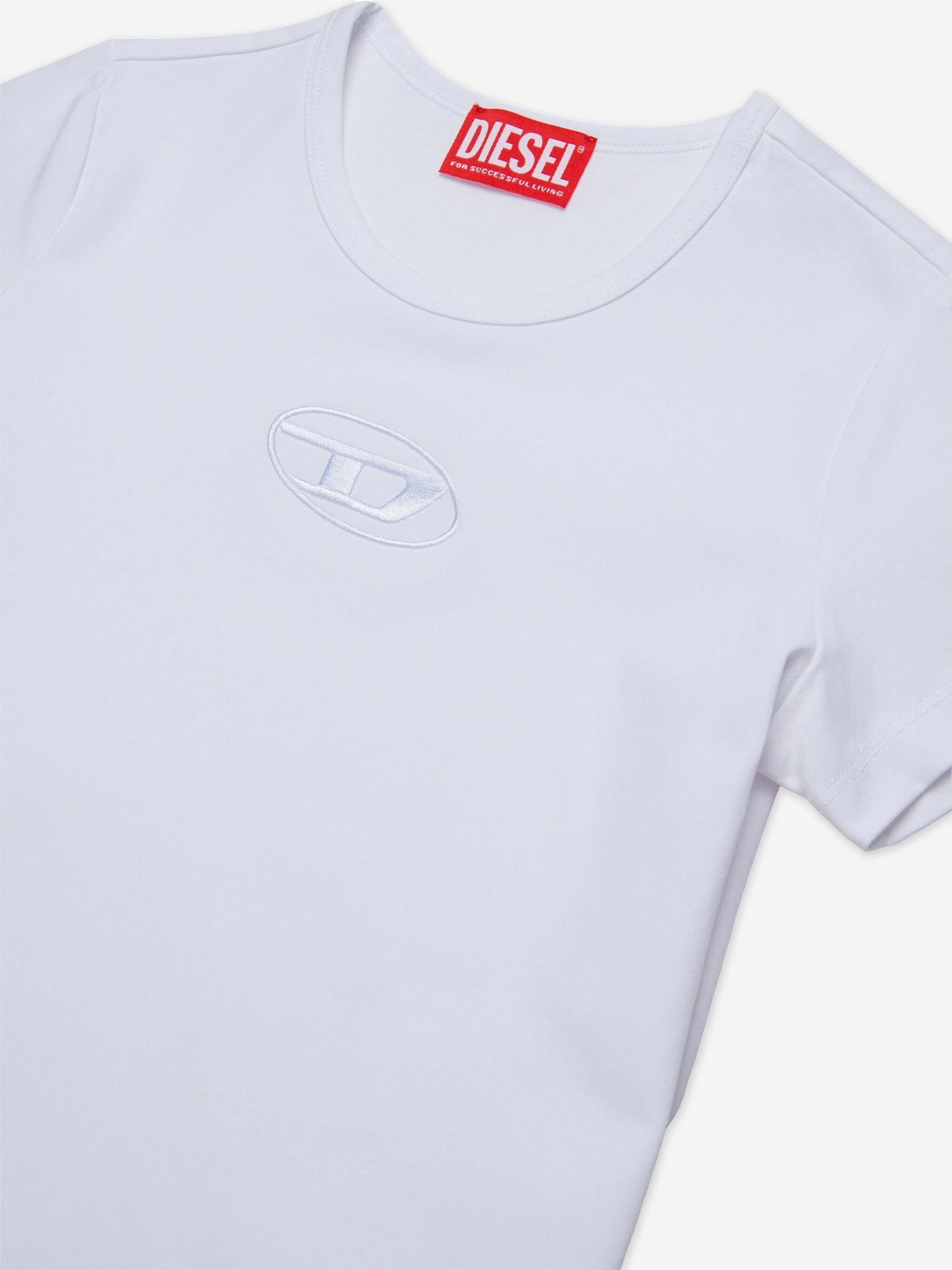 温馨提示:该商品下单后不支持取消订单,请您在购买前确认商品信息无误。商品如有缺货情况,订单会自动取消退款。预计收货时间为1至2周。 Introducing the Diesel Girls Logo T-Shirt in pristine white, an essential addition for your little one's AW2024 collection! Each feature is crafted with precision: