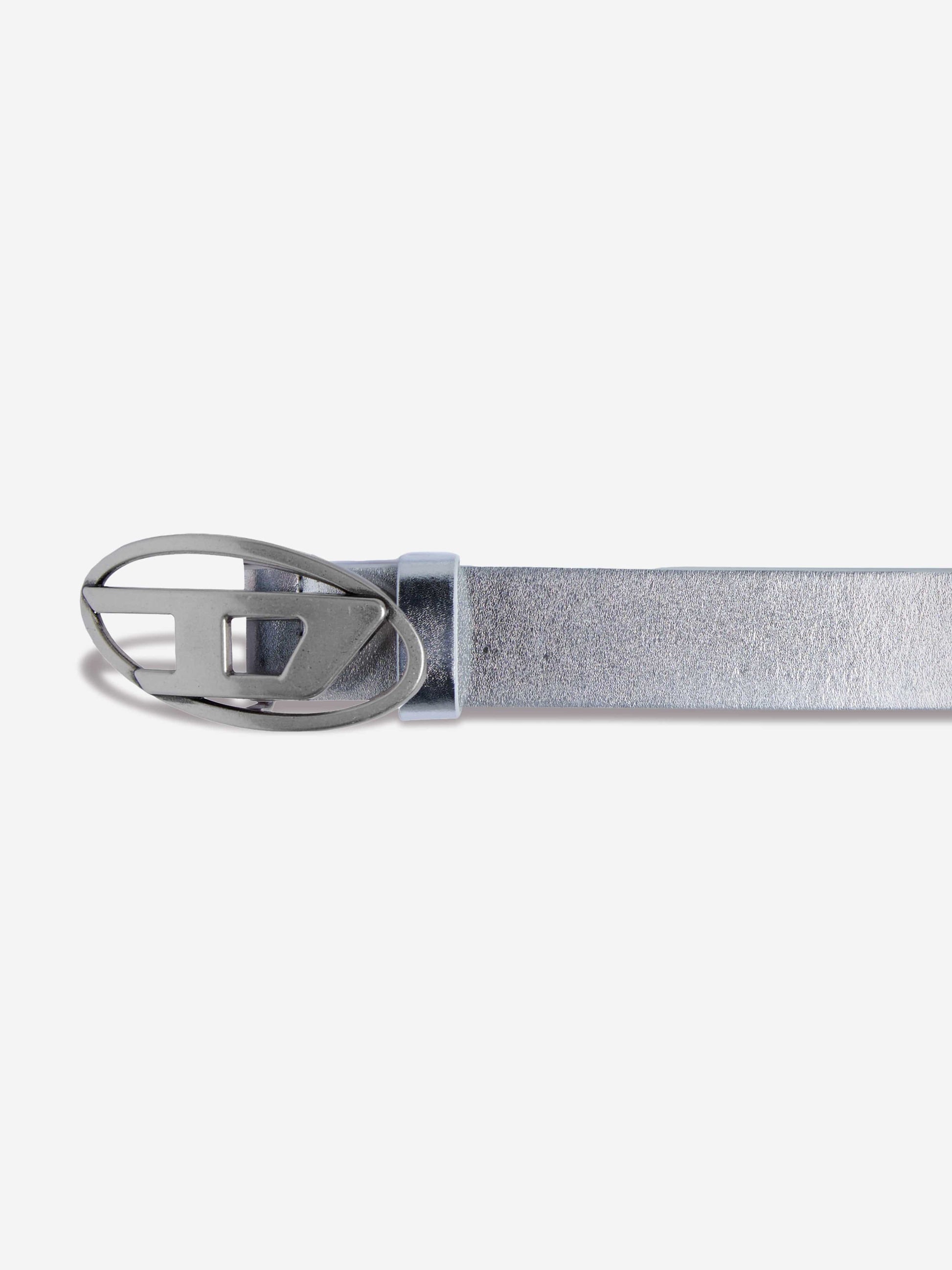 Diesel Kids 银色椭圆形 D 形皮革腰带