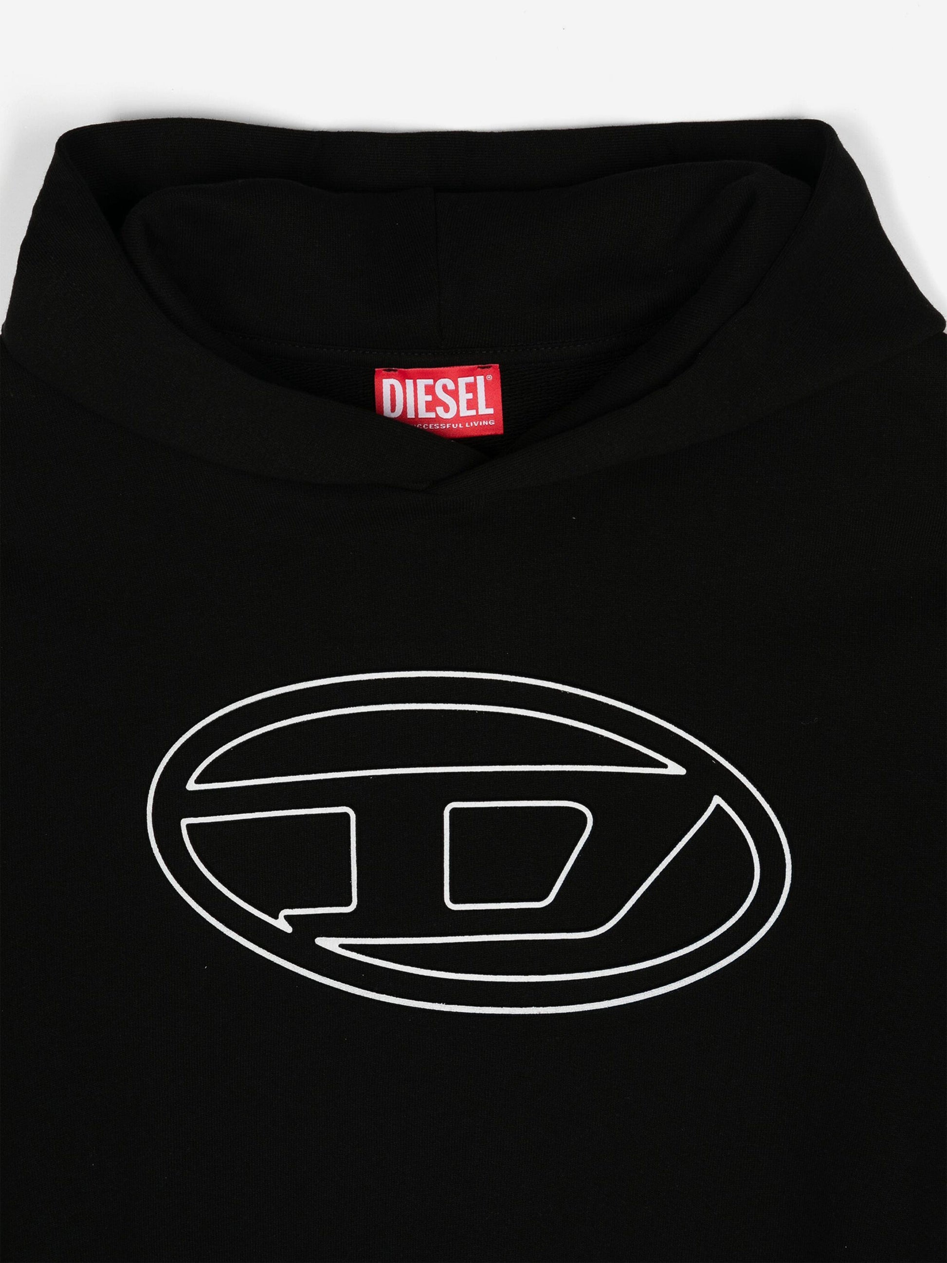 温馨提示:该商品下单后不支持取消订单,请您在购买前确认商品信息无误。商品如有缺货情况,订单会自动取消退款。预计收货时间为1至2周。 Discover the Diesel Boys Oval D Logo Hoodie in Black – an essential addition to any fashion-forward youngster's wardrobe for AW2024:
