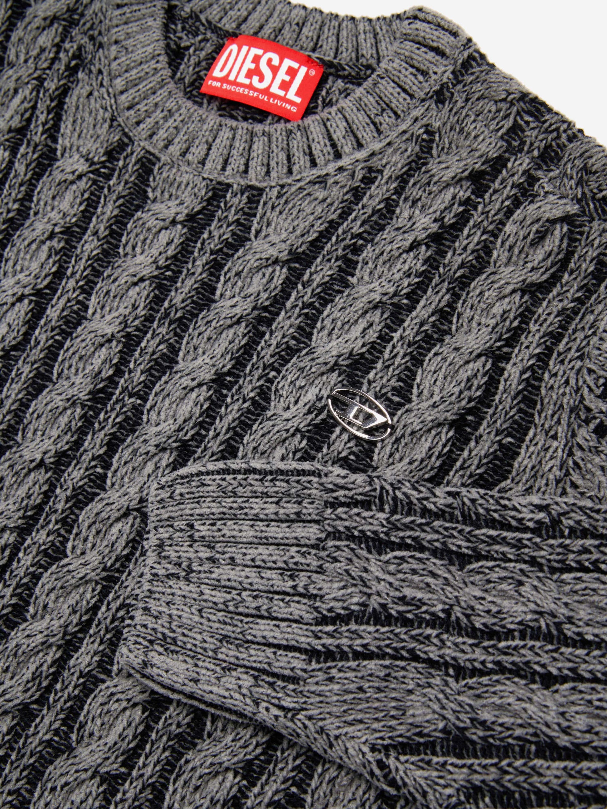 温馨提示:该商品下单后不支持取消订单,请您在购买前确认商品信息无误。商品如有缺货情况,订单会自动取消退款。预计收货时间为1至2周。 Introducing the Diesel Kids Knitted Jumper in Grey, a sophisticated staple for AW2024 for both boys and girls. Elegantly designed and luxuriously comfortable, this jumper is a must-have in young wardrobes.