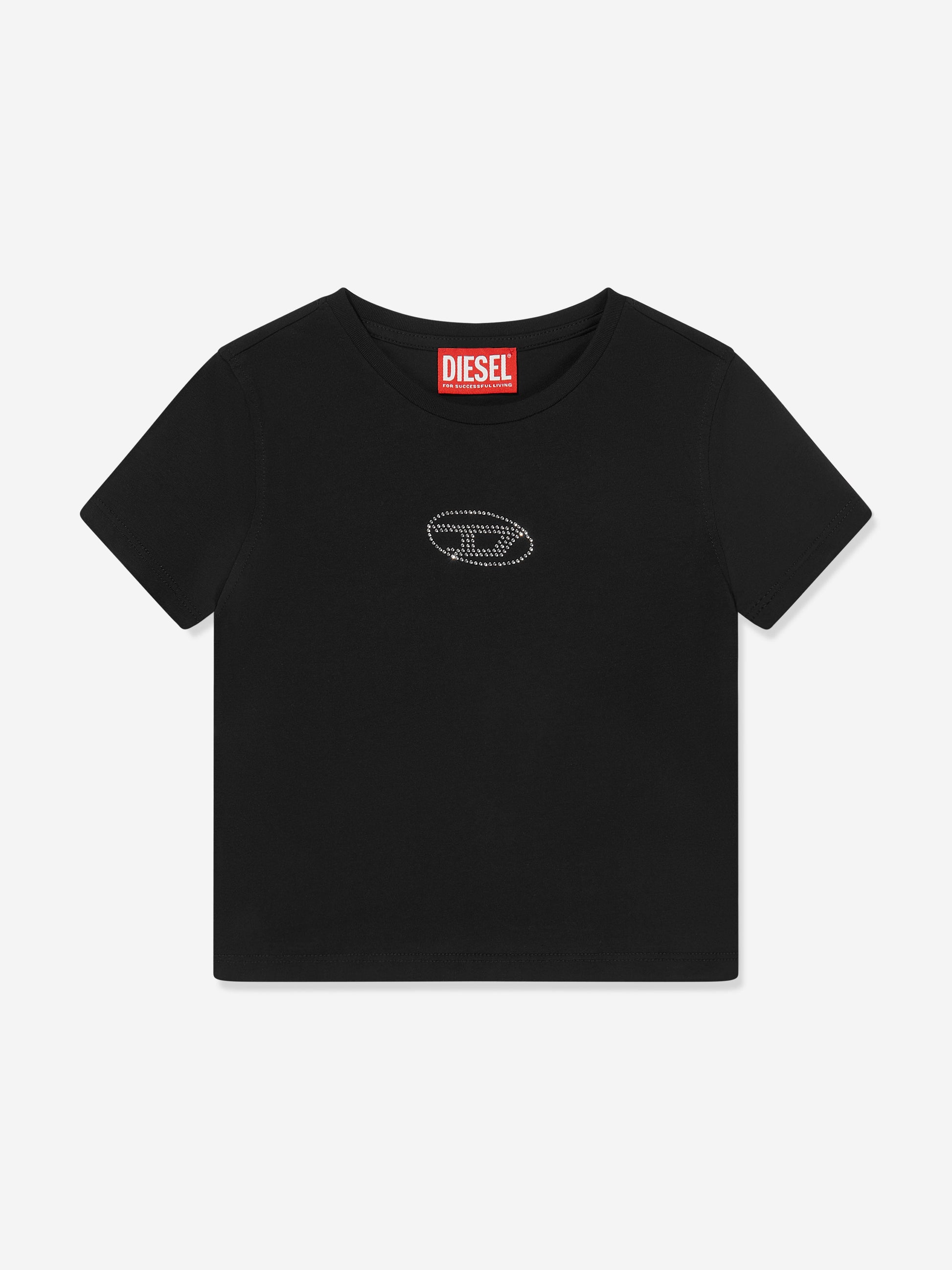 Elevate her style with the Diesel Girls Oval D Logo T-Shirt in Black – where elegance meets everyday wearability.
