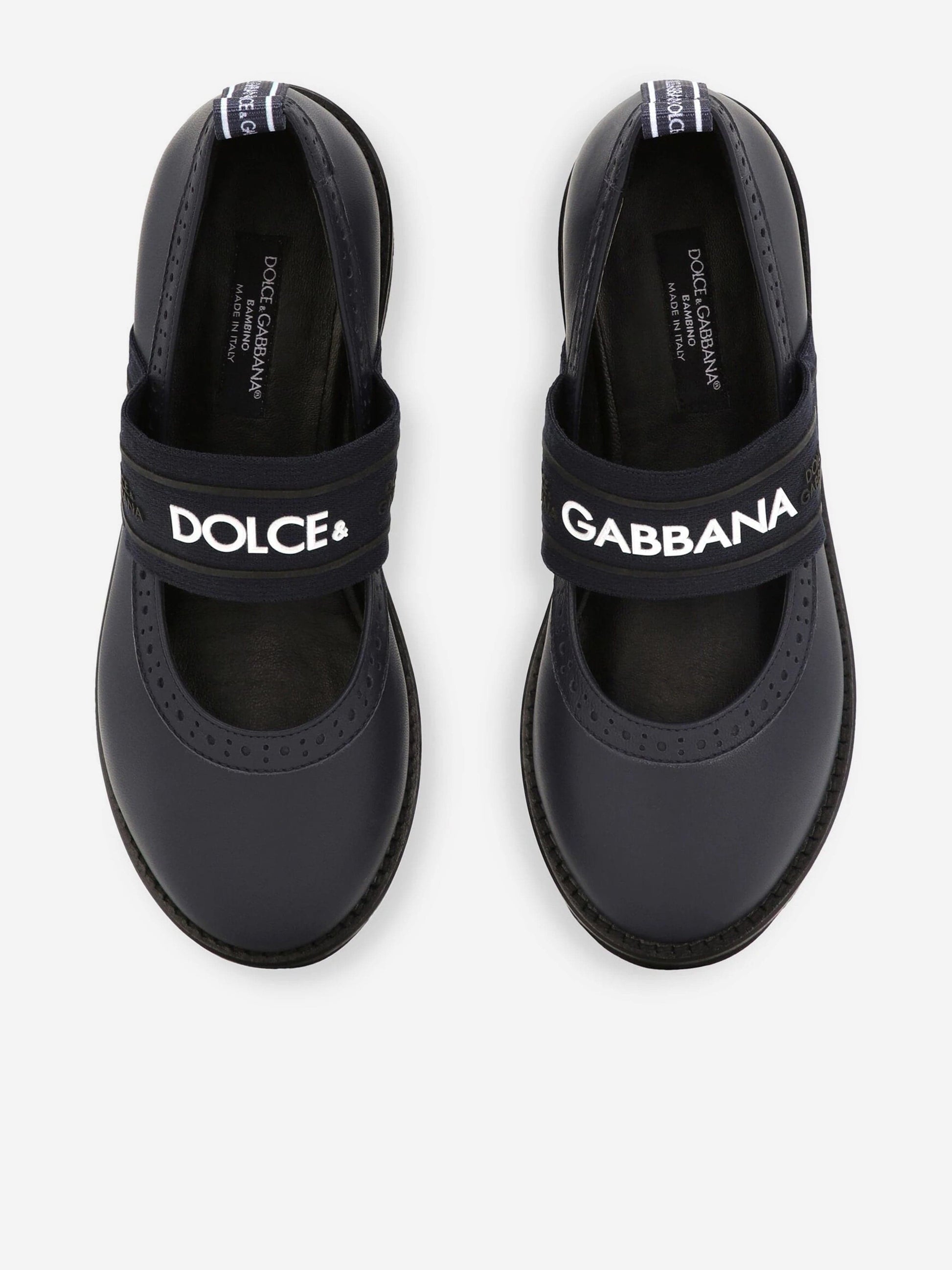 Dolce & Gabbana 女童蓝色皮革布洛克玛丽珍鞋