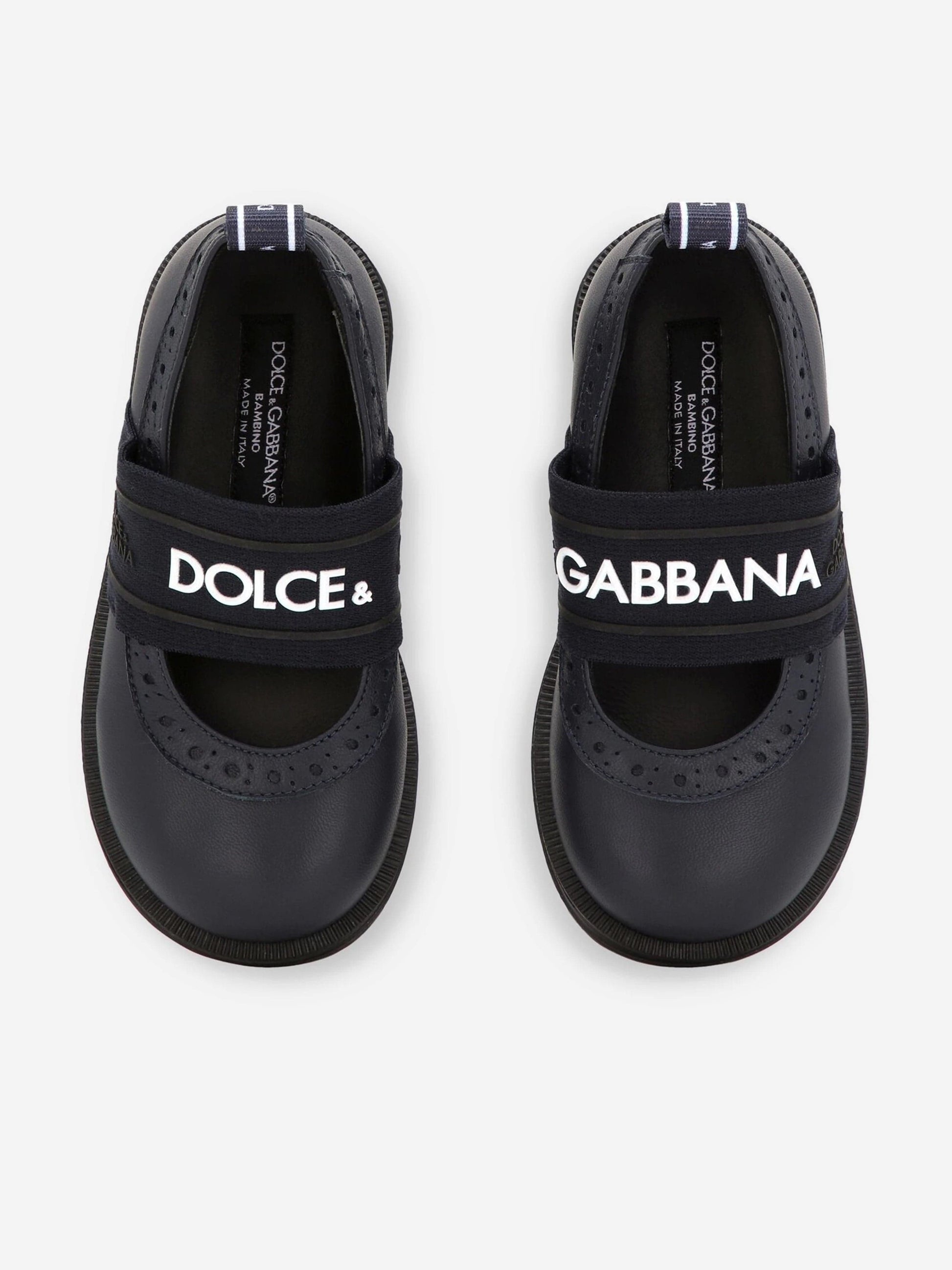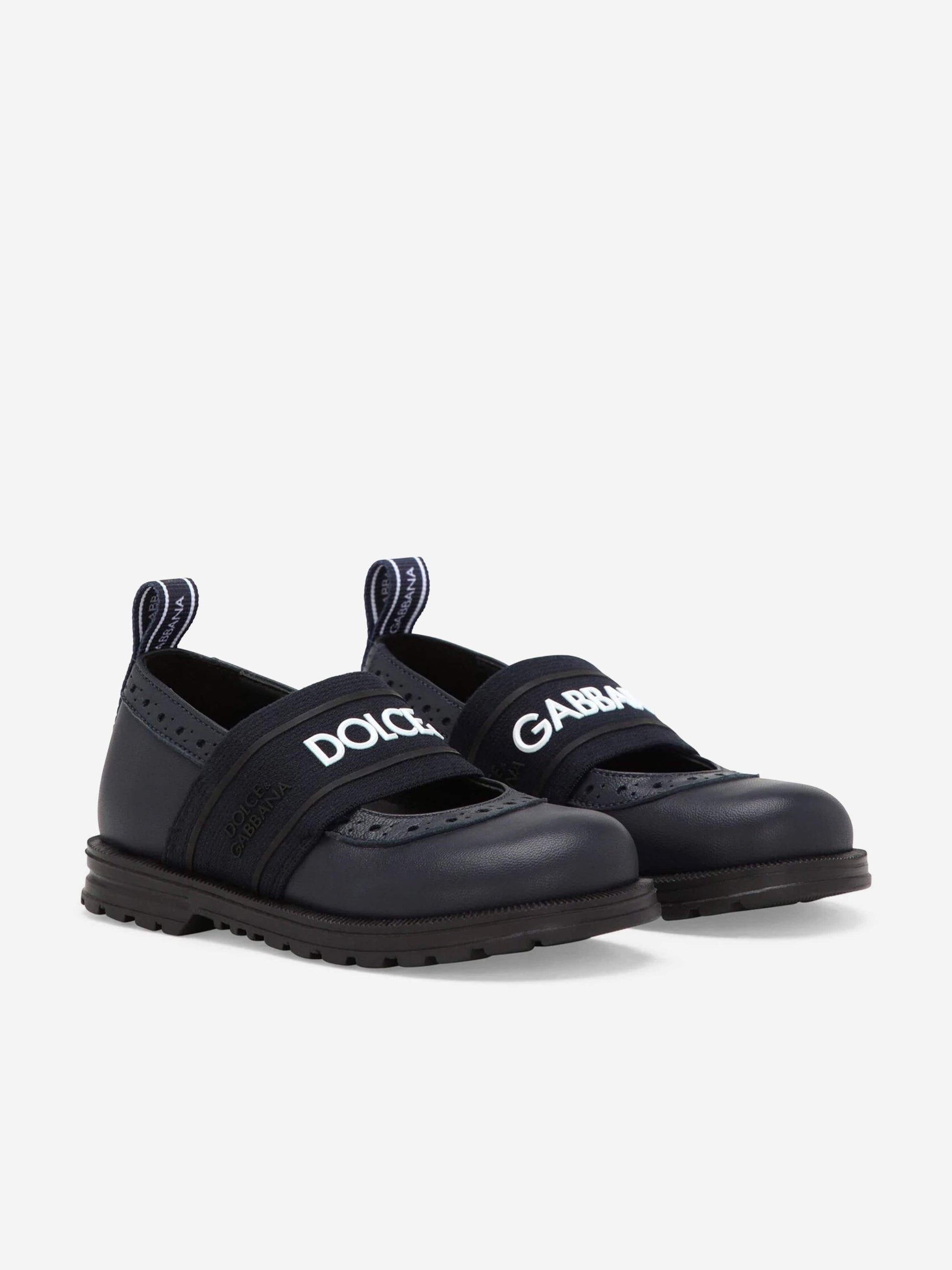 Dolce & Gabbana 女童蓝色皮革布洛克玛丽珍鞋