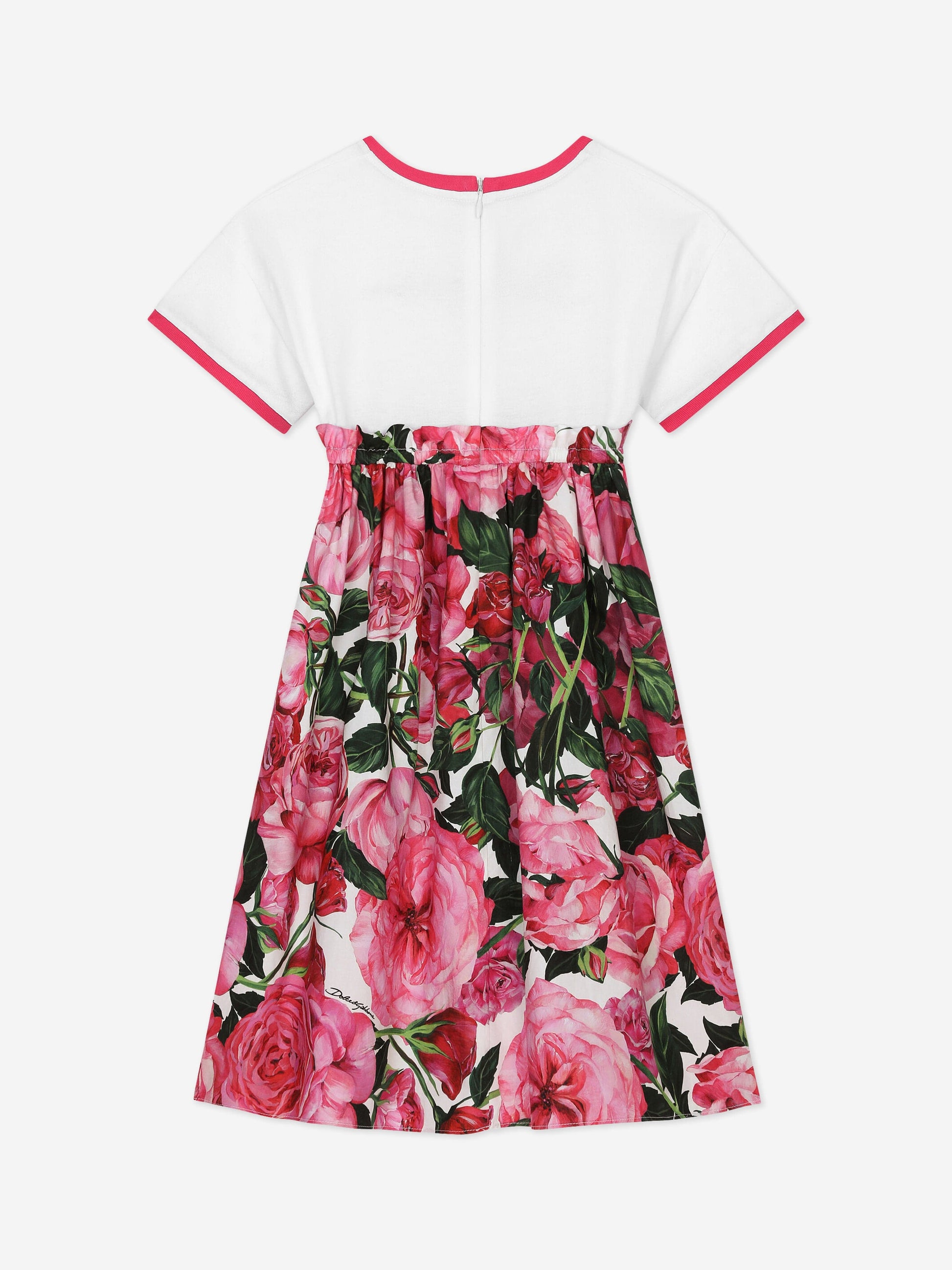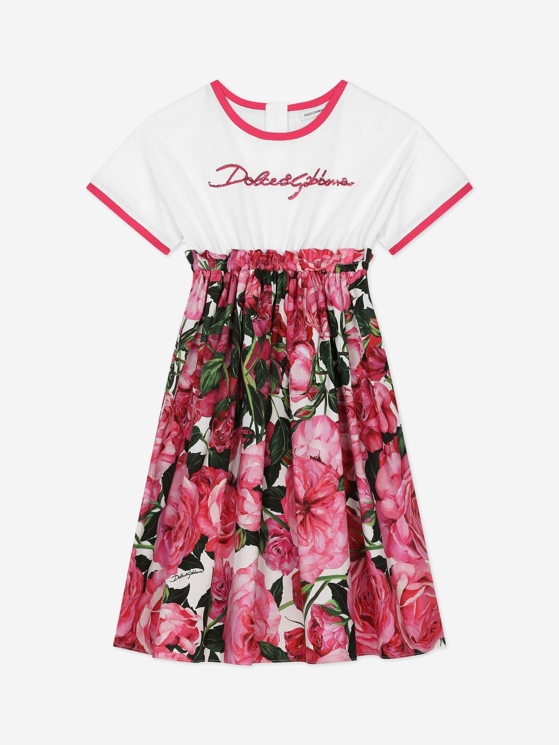 Dolce & Gabbana 女童粉色棉质玫瑰印花连衣裙