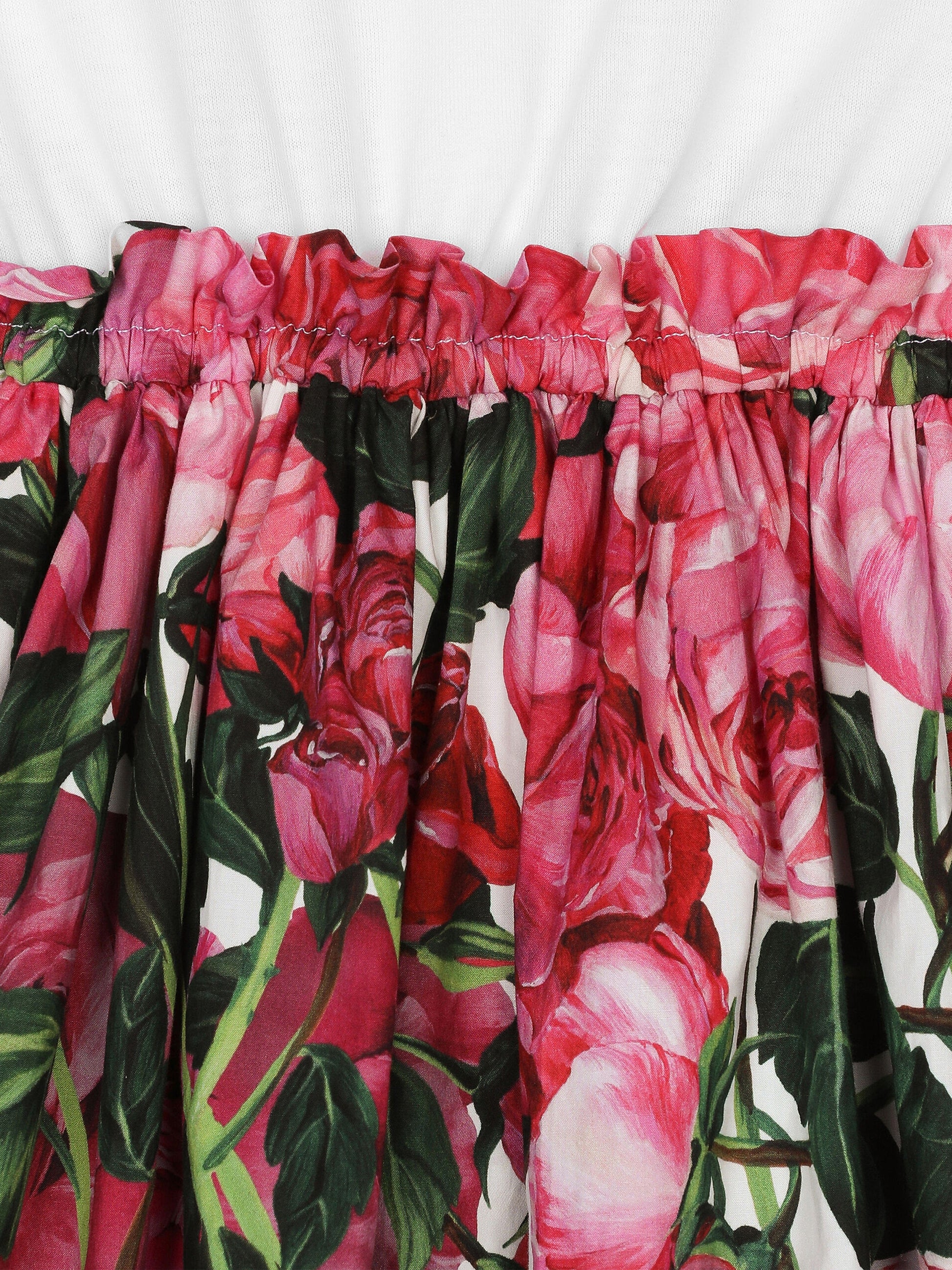温馨提示:该商品下单后不支持取消订单,请您在购买前确认商品信息无误。商品如有缺货情况,订单会自动取消退款。预计收货时间为1至2周。 Dolce & Gabbana project exquisite concepts into their beautifully crafted aesthetics. This girls t-shirt dress is a dreamy, captivating construction. Envisioned in cotton jersey and poplin with all-over rose print over a white background. It showcases a contrasting round neck in a stretch knit and sequined Dolce&Gabbana logo on the bodice.