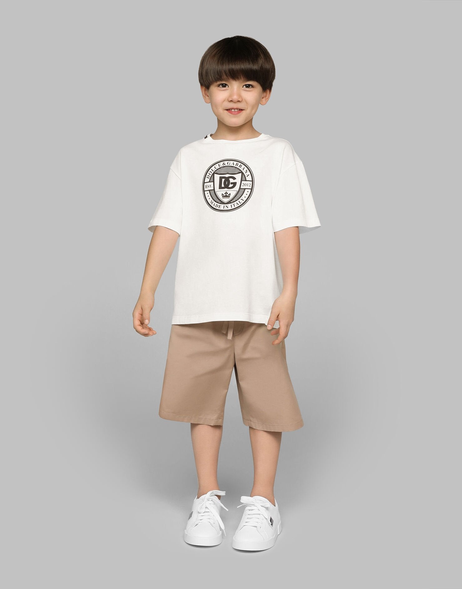温馨提示:该商品下单后不支持取消订单,请您在购买前确认商品信息无误。商品如有缺货情况,订单会自动取消退款。预计收货时间为1至2周。 Dolce & Gabbana is giving shape to a timeless wardrobe, composed of iconic pieces that are perfect for everyday wear. This cotton jersey t-shirt is a part of the FW24/25 Boy’s Palermo Collection which takes inspiration from places, history, traditions and culture. Crafted in a soft cotton jersey with a DG logo print, evoking the imagery of the 1940s and 1950s. The sophisticated piece is complete with a stretch knit round neck.