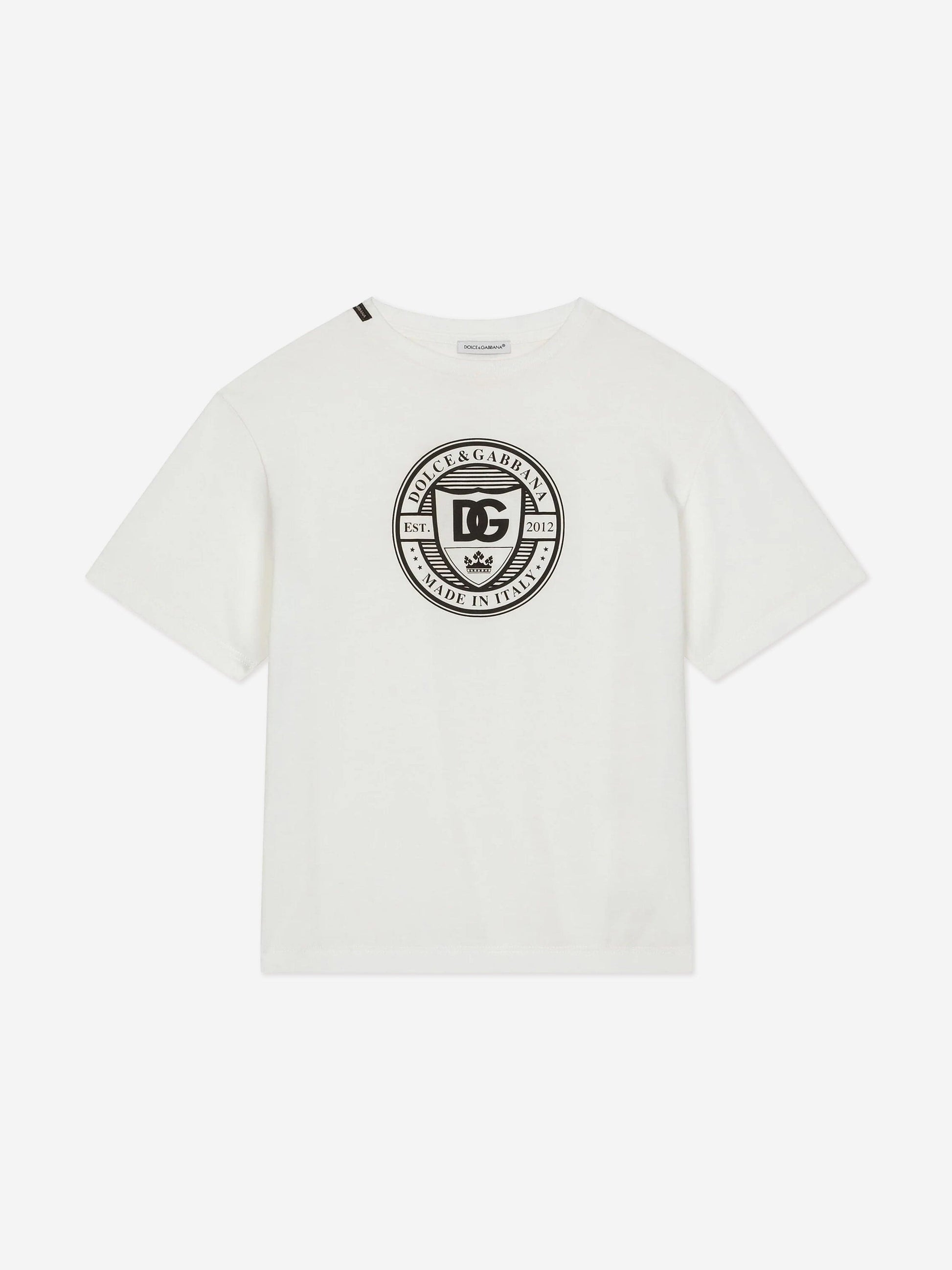 Dolce & Gabbana 男童白色徽标印花 T 恤
