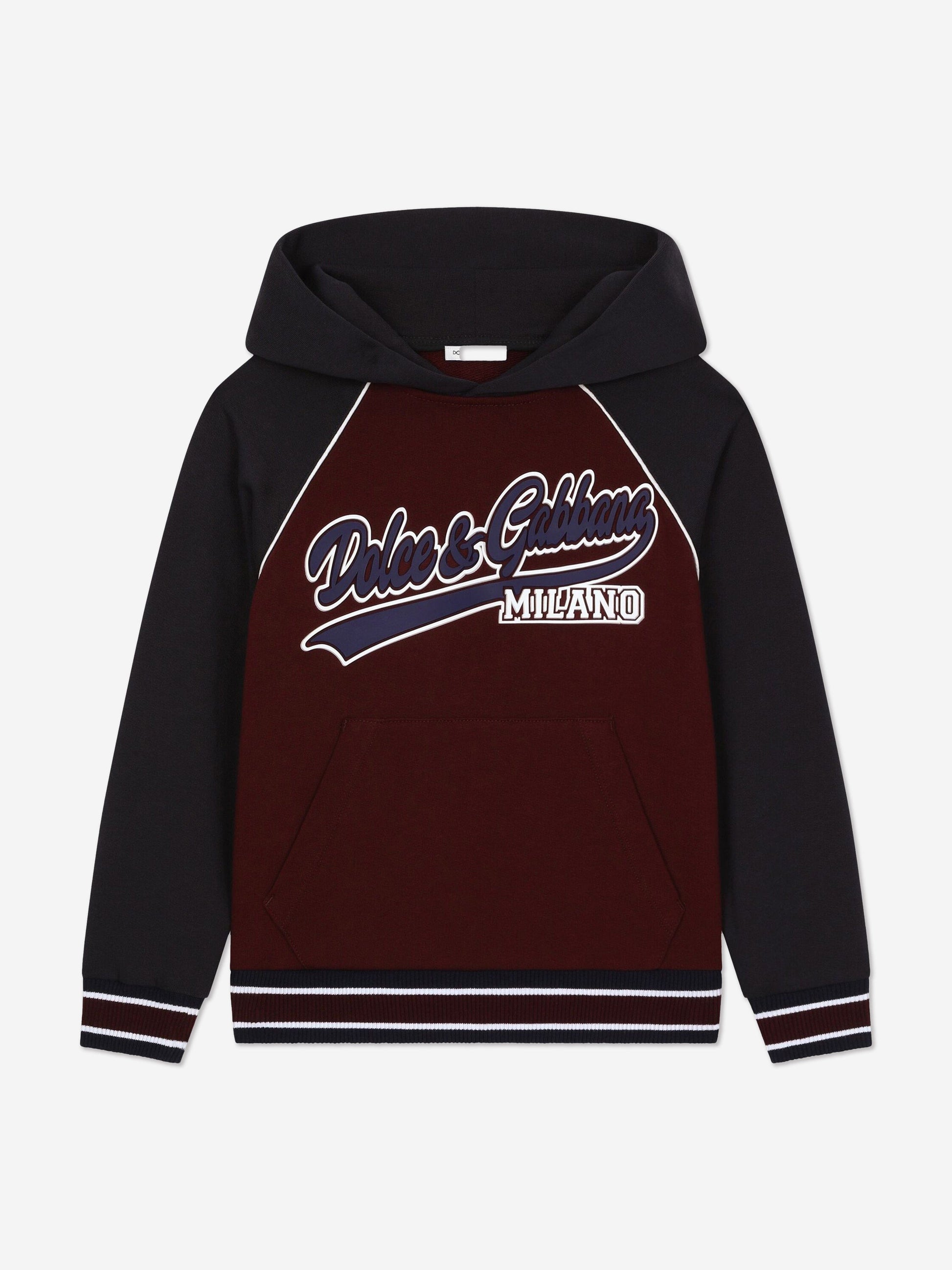 温馨提示:该商品下单后不支持取消订单,请您在购买前确认商品信息无误。商品如有缺货情况,订单会自动取消退款。预计收货时间为1至2周。 Dolce & Gabbana utilise new technological properties to create captivating aesthetics. This boys hoodie is a part of the Back to School Collection which is affiliated with Anglo-Saxon imagery, merging functionality with fun. Envisioned in cotton jersey showcasing a rubberised Dolce&Gabbana logo print, a front pouch pocket and long contrasting sleeves with striped stretch knit cuffs.