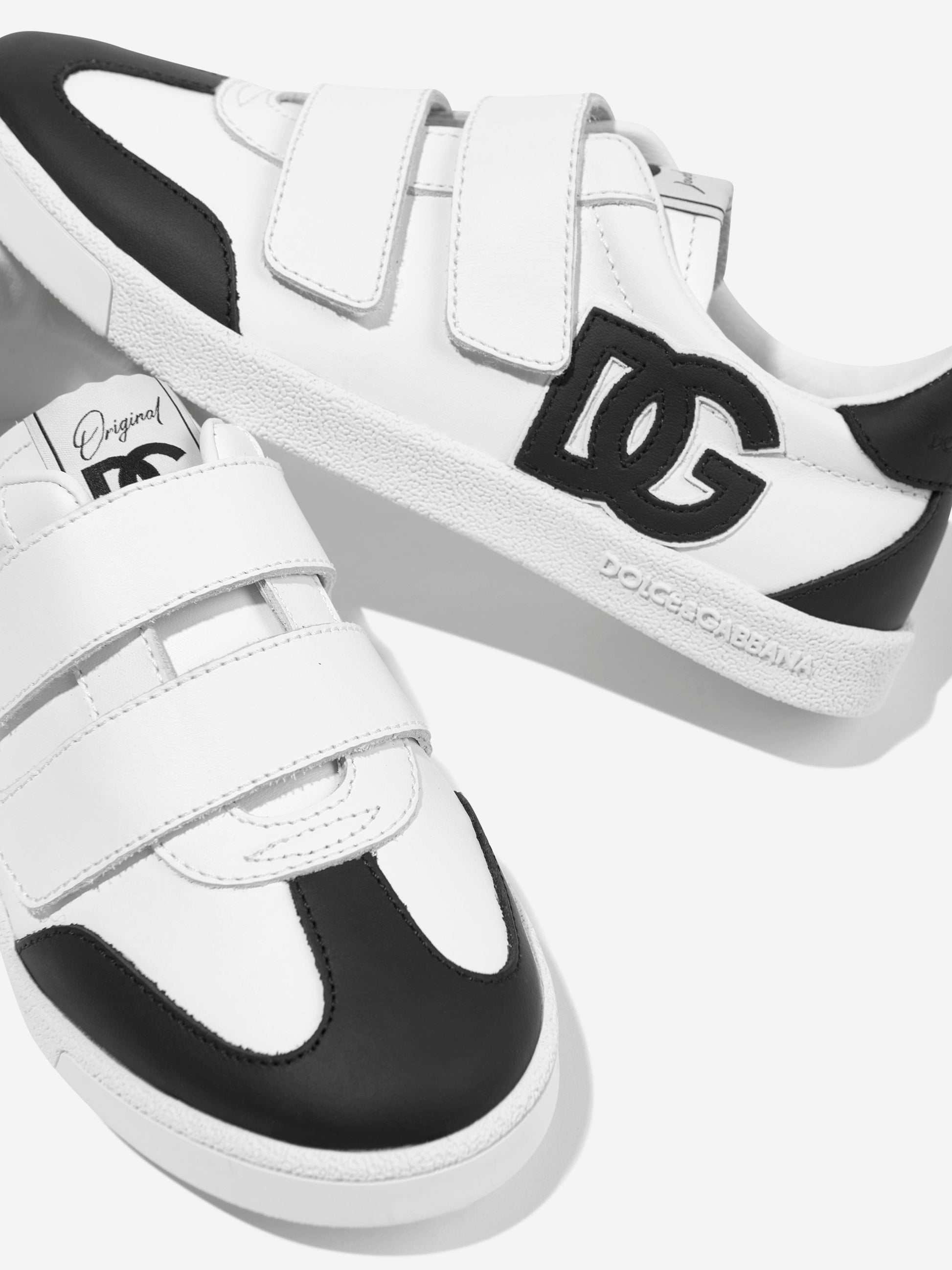 Dolce & Gabbana Boys 白色 Portofino 皮革运动鞋