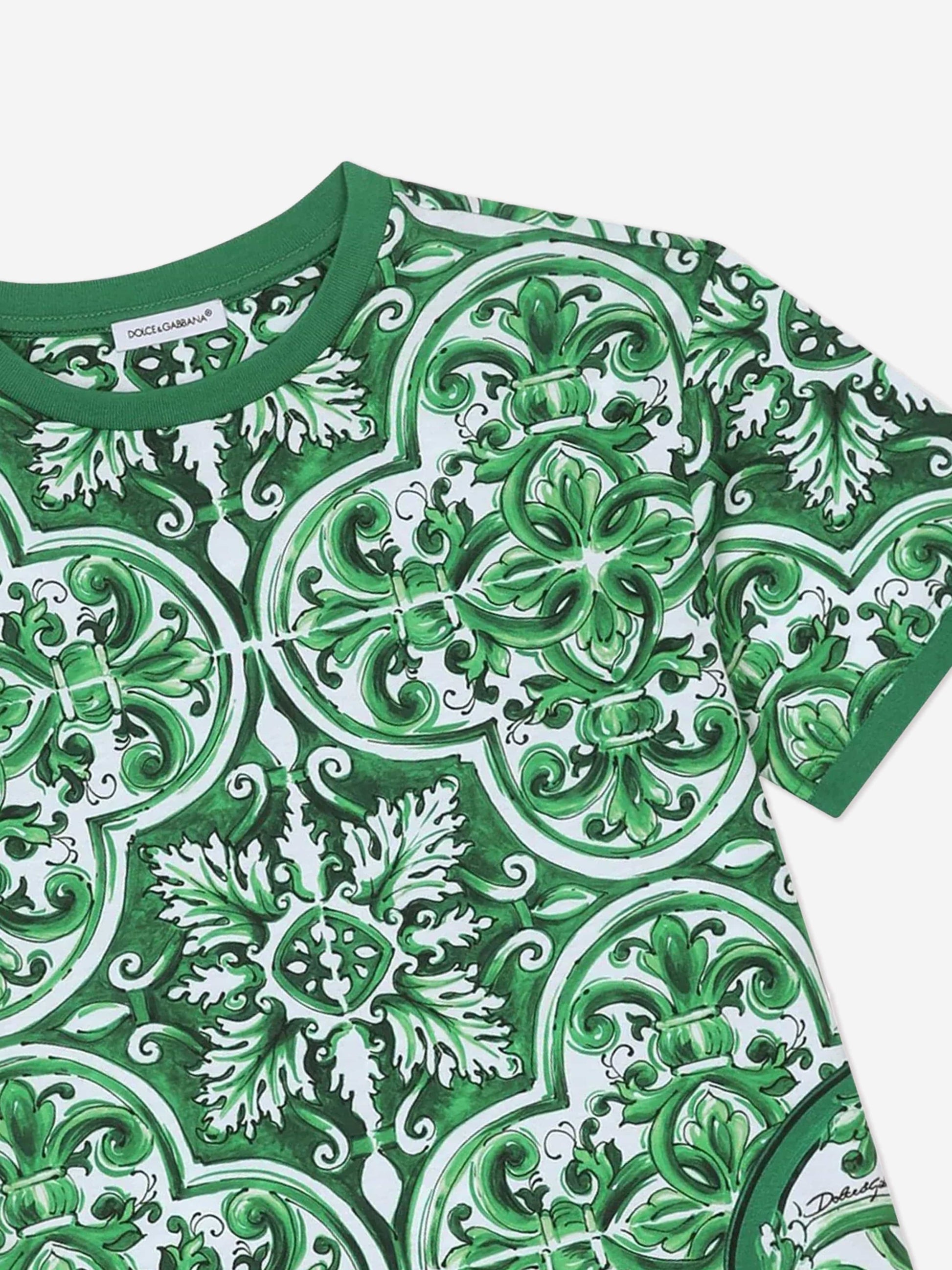 Dolce & Gabbana 男童绿色 Maiolica 印花 T 恤