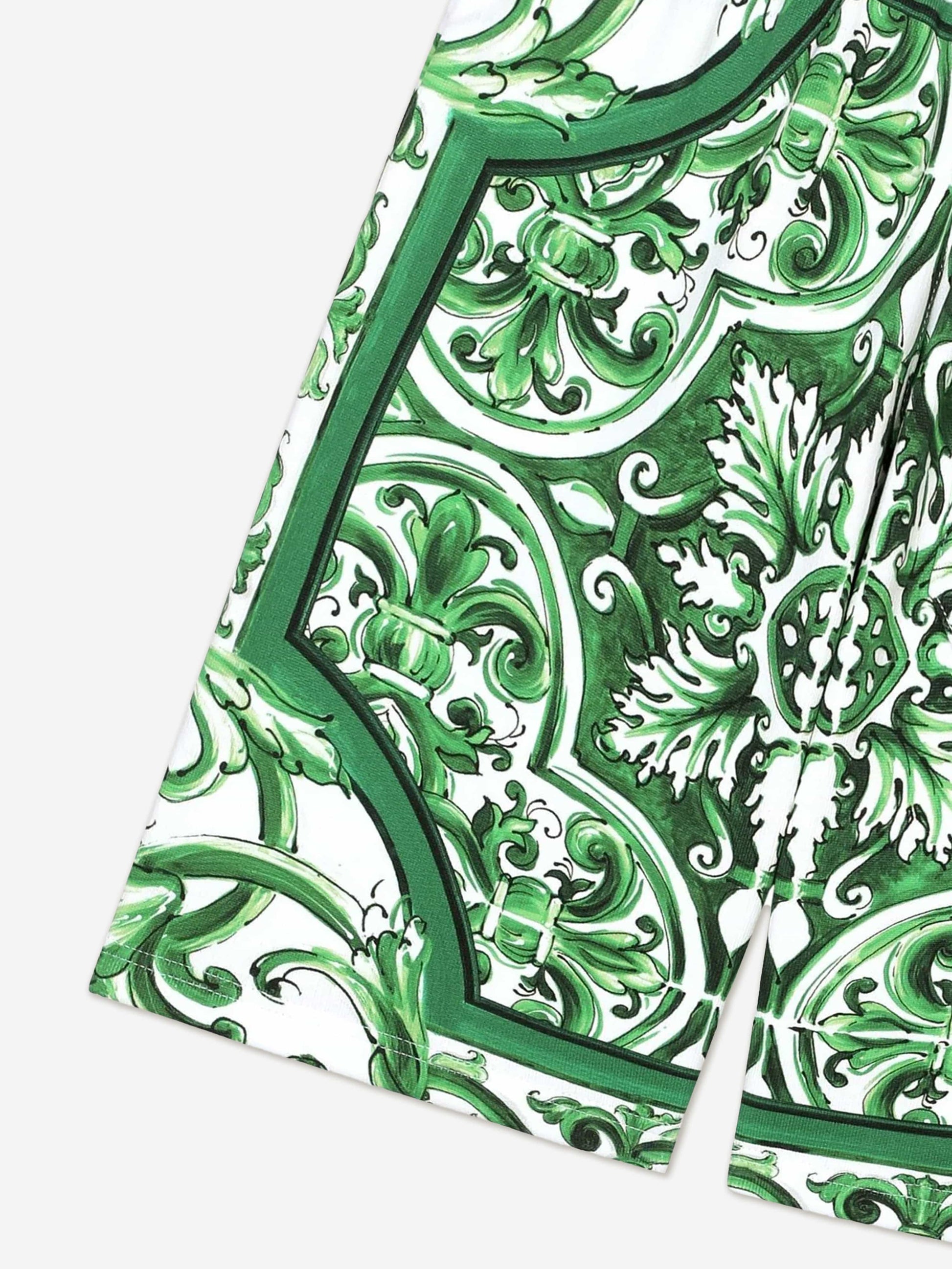 温馨提示:该商品下单后不支持取消订单,请您在购买前确认商品信息无误。商品如有缺货情况,订单会自动取消退款。预计收货时间为1至2周。 Dolce & Gabbana utilise new technological properties to create captivating aesthetics. These boys shorts are part of the FW24/25 Boy’s Collection. A cool, laidback collection that boasts a “calligraphic-naturalistic” Majolica accent. Crafted in a magnetic two-tone detailing – bright green and white- cotton jersey shorts with all-over green majolica print. Both sleek and enigmatic, he will be obsessed.