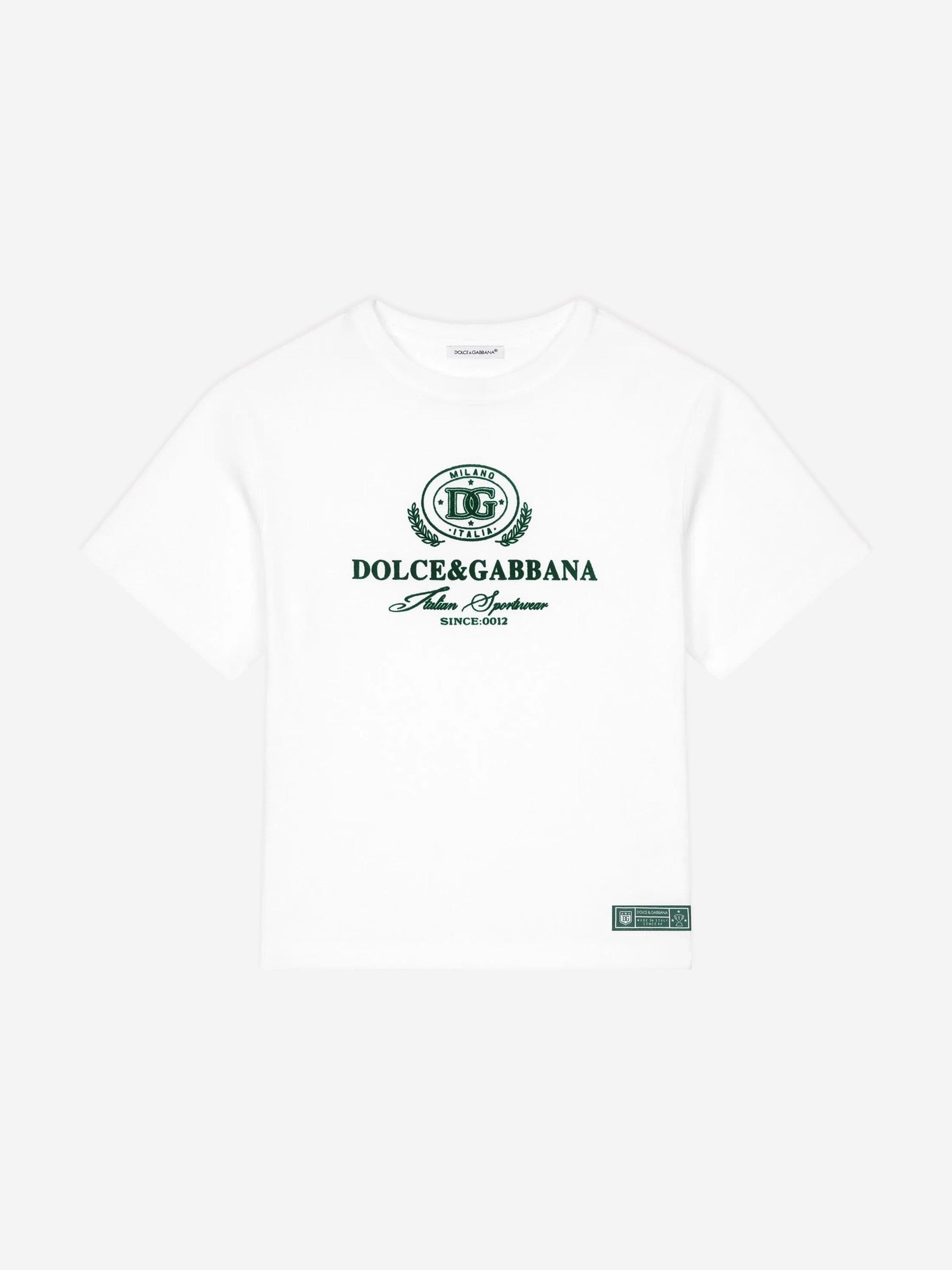 Dolce & Gabbana 男童白色植绒徽标 T 恤