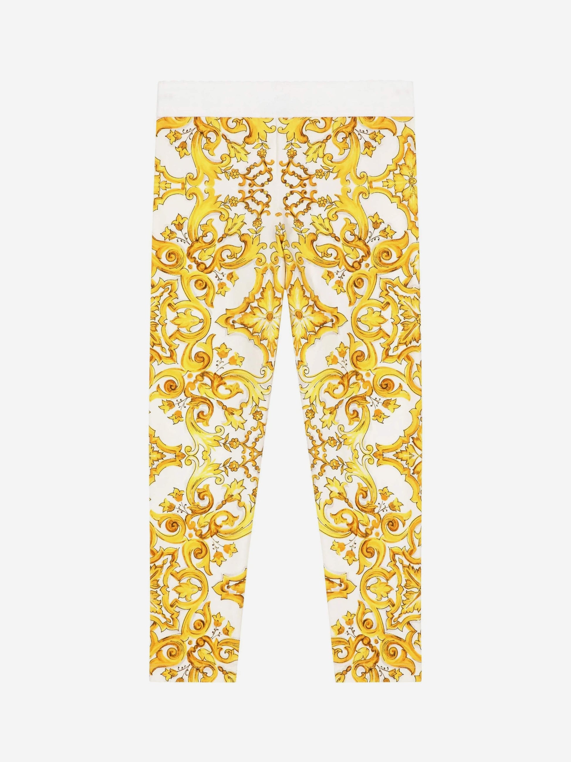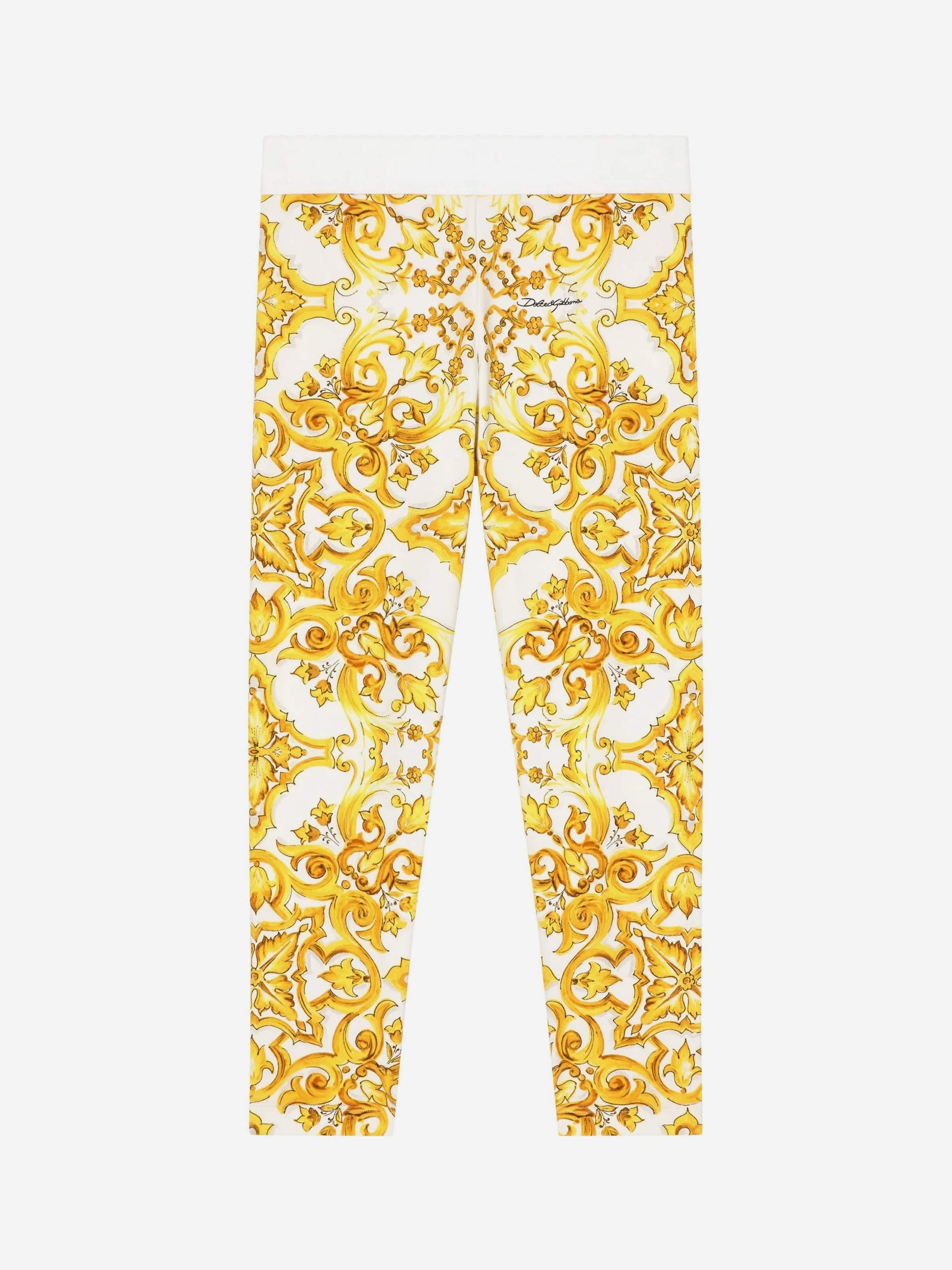 Dolce & Gabbana 女童 Maiolica 印花紧身裤(黄色)