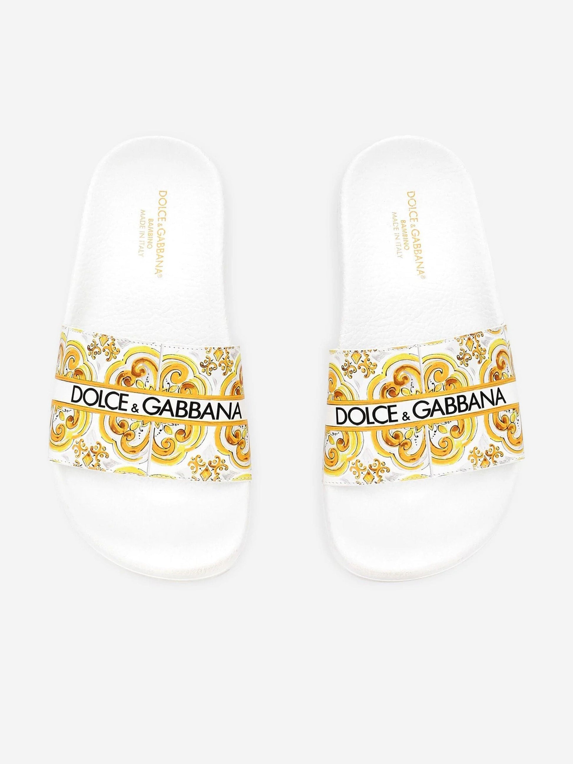 Dolce & Gabbana 女童皮革 Maiolica 拖鞋(黄色)