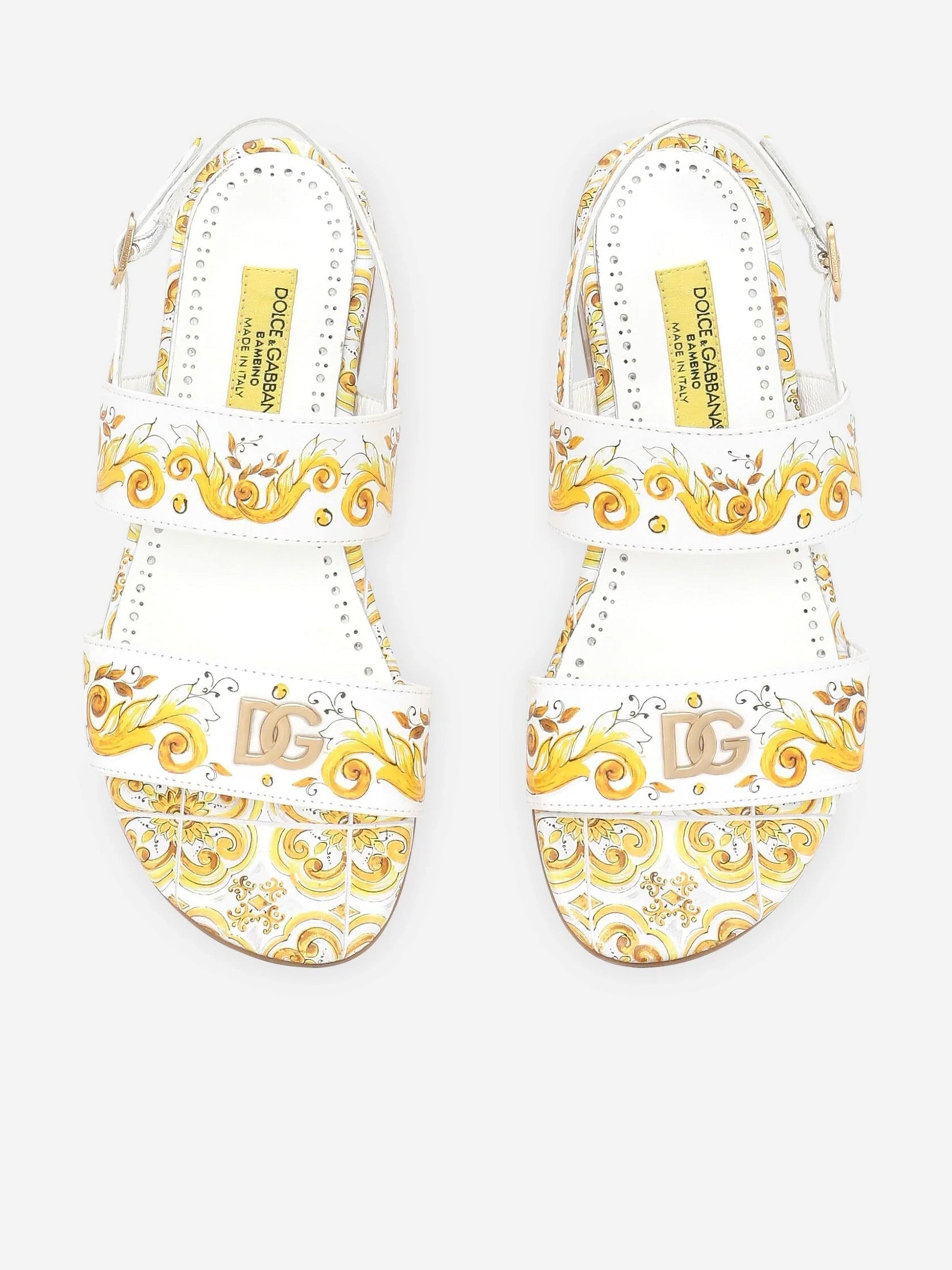 Dolce & Gabbana 女童黄色 Maiolica 皮革凉鞋