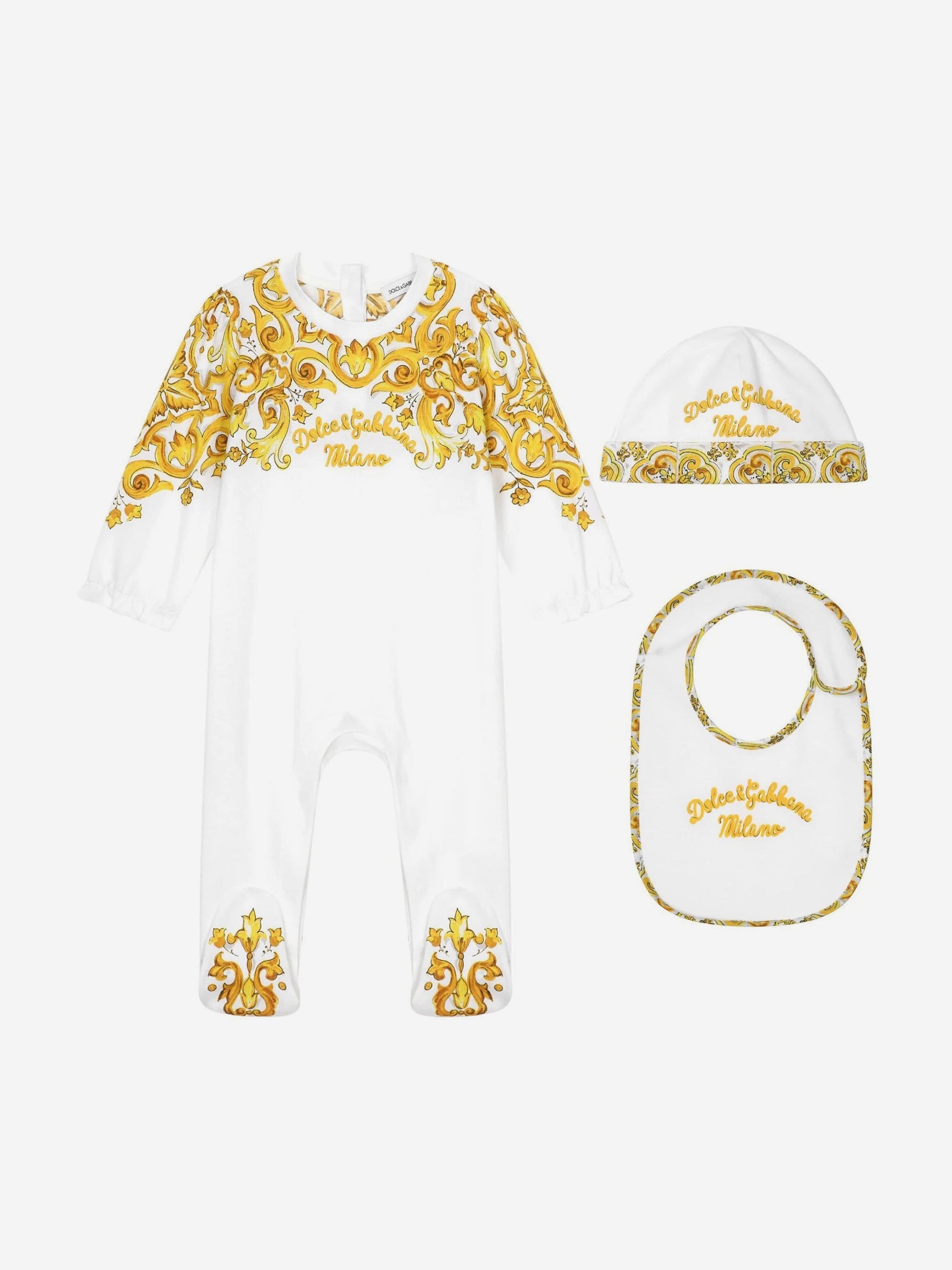 Dolce & Gabbana 女婴 Maiolica 婴儿连体衣礼品套装(黄色)