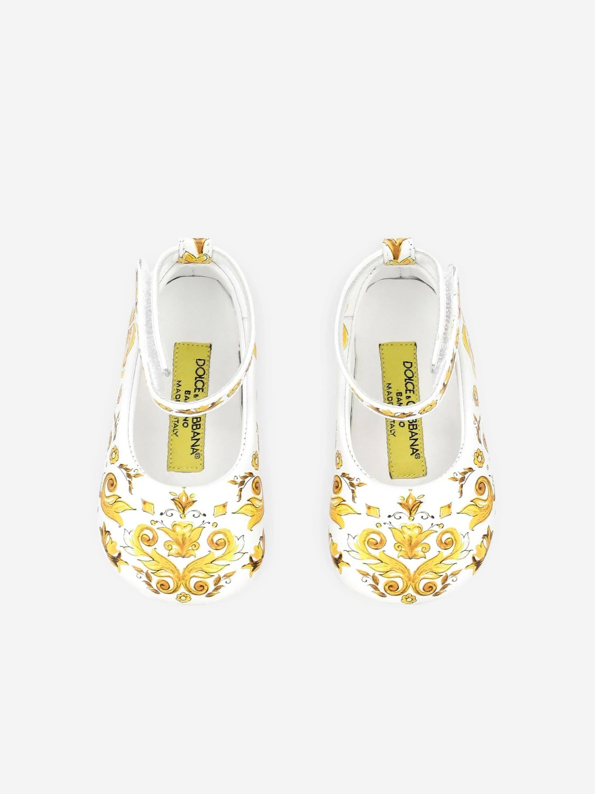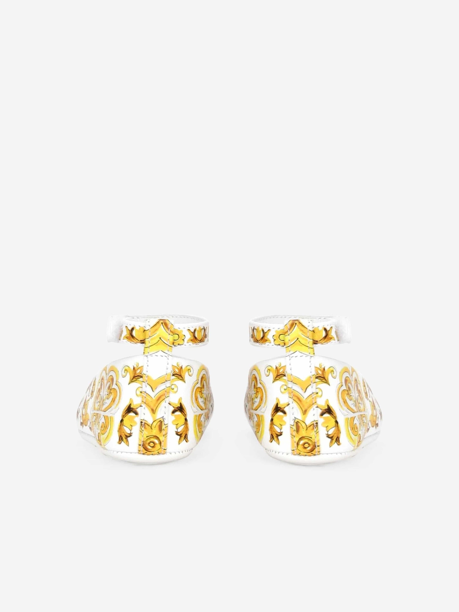 Dolce & Gabbana 女婴皮革 Maiolica 学步鞋(黄色)