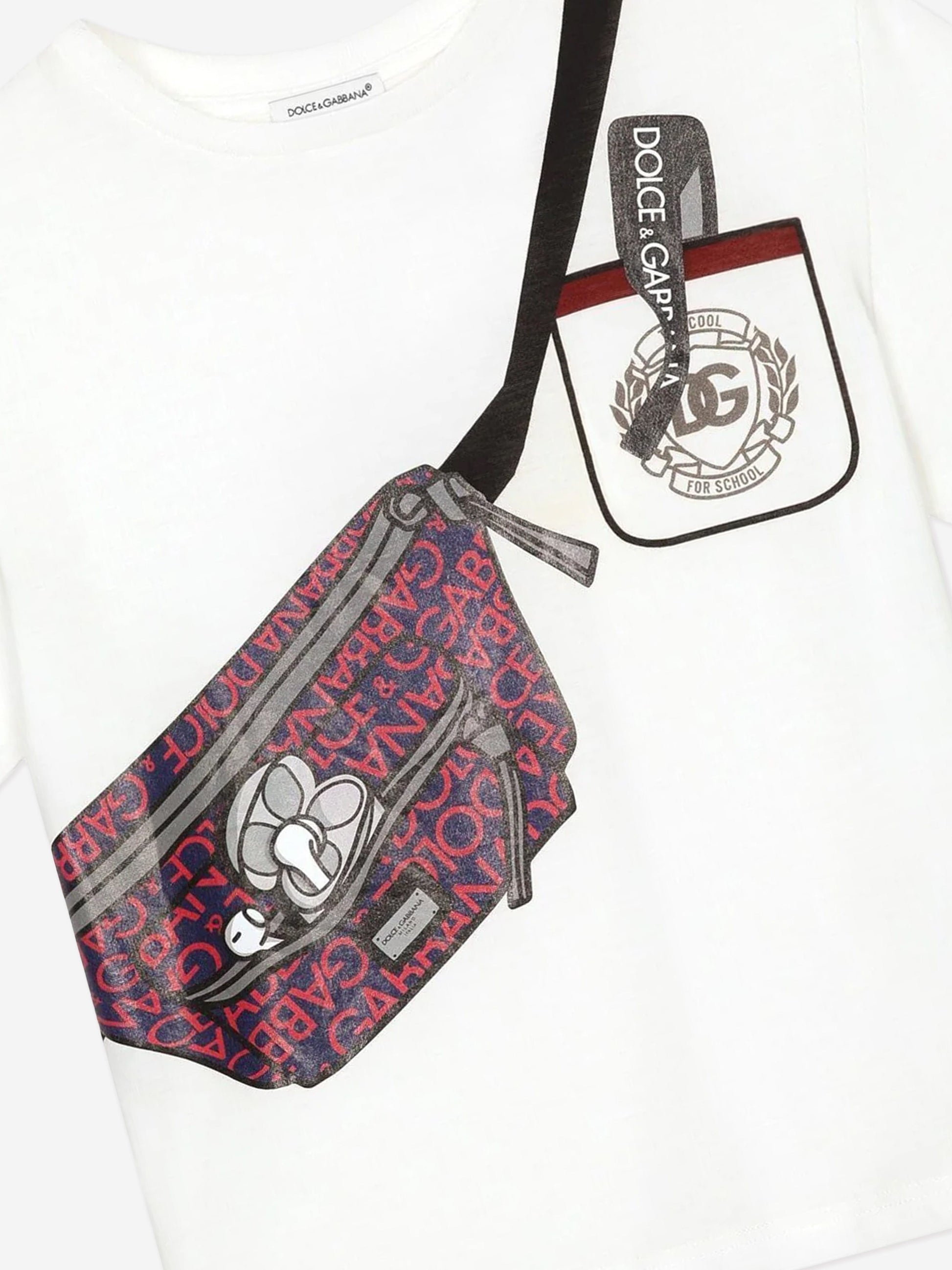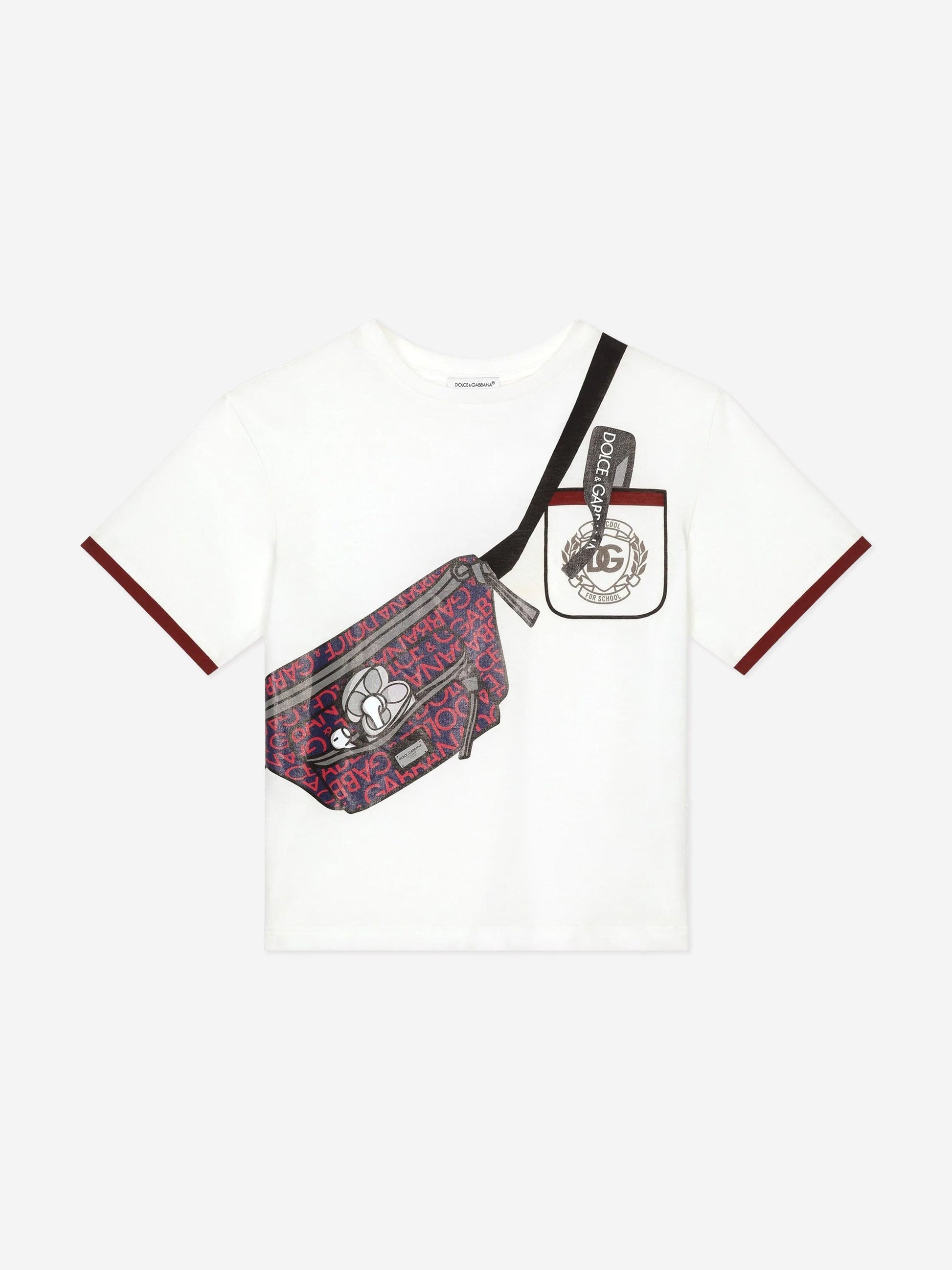 Dolce & Gabbana 男童白色包袋印花 T 恤