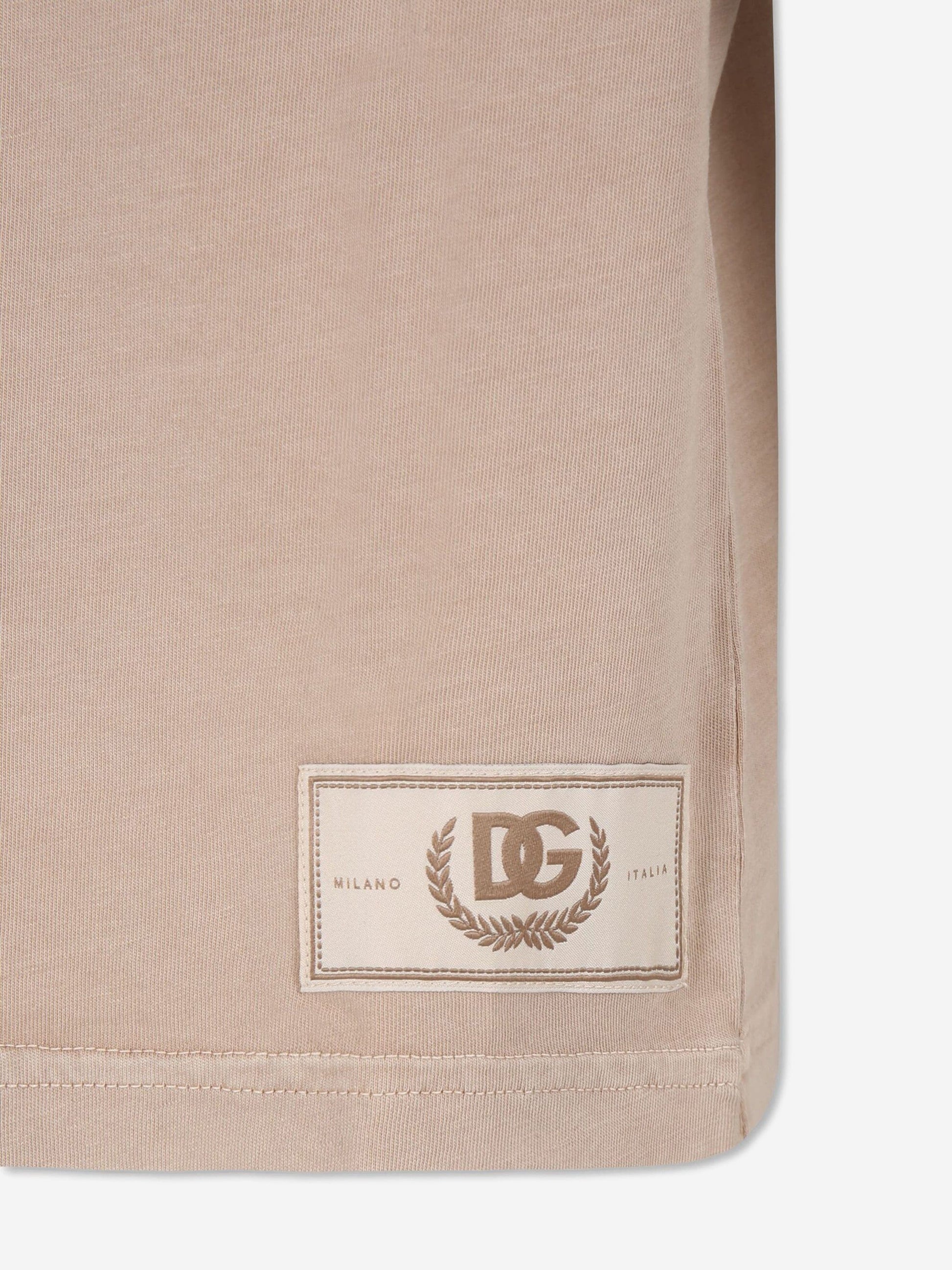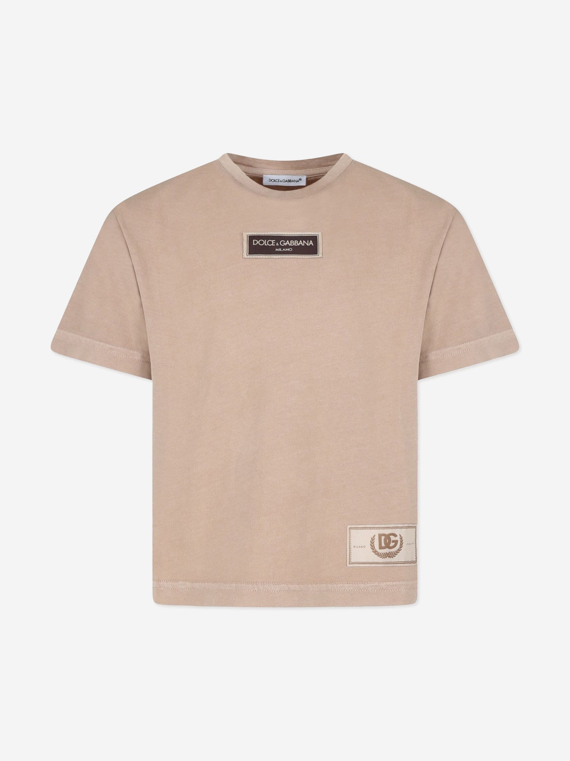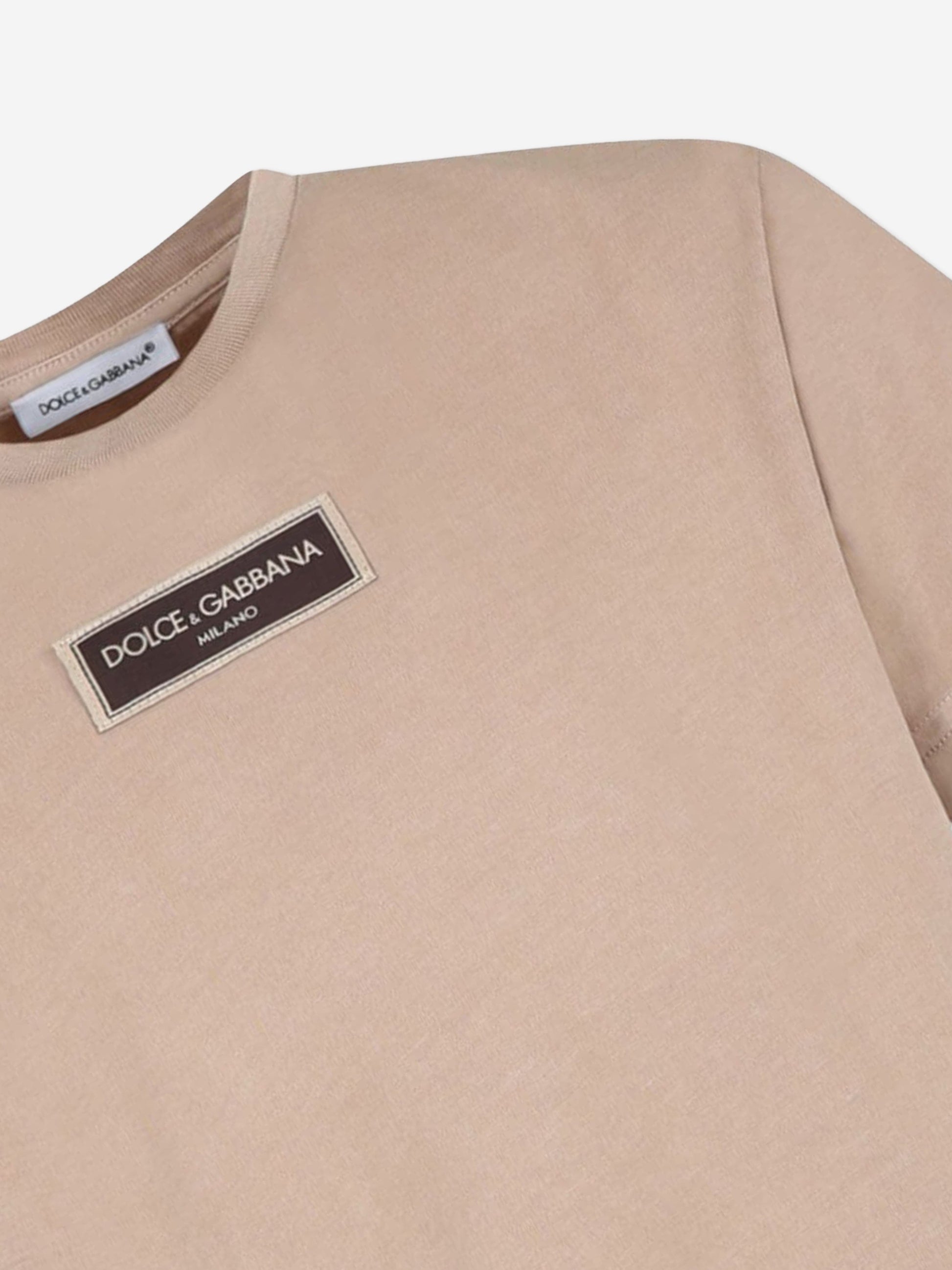 Dolce & Gabbana 男童米色徽标标签 T 恤