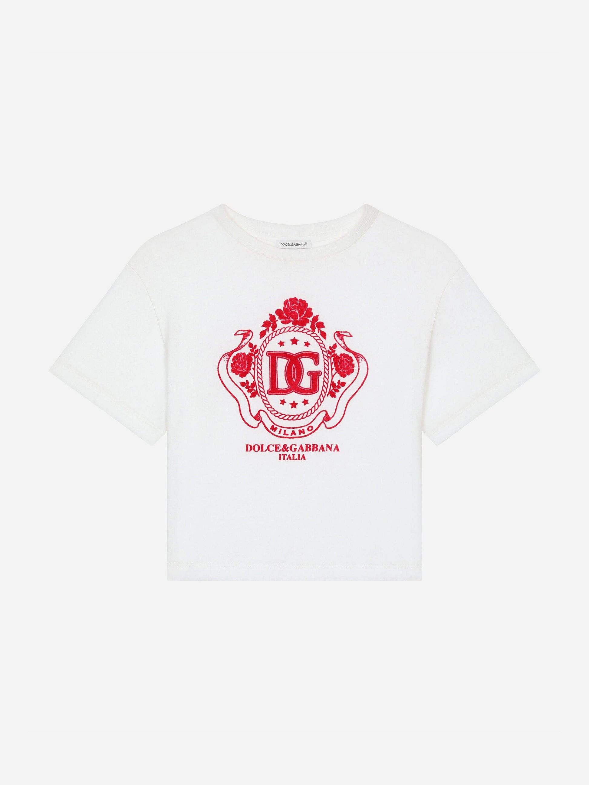 温馨提示:该商品下单后不支持取消订单,请您在购买前确认商品信息无误。商品如有缺货情况,订单会自动取消退款。预计收货时间为1至2周。 Dolce & Gabbana utilise new technological properties to create captivating aesthetics. This girls short sleeve cotton jersey t-shirt is a part of the Winter Flower collection which enchants with its romantic allure. It showcases flocked Dolce&Gabbana logo print and a stretch knit round neck. She will be obsessed.