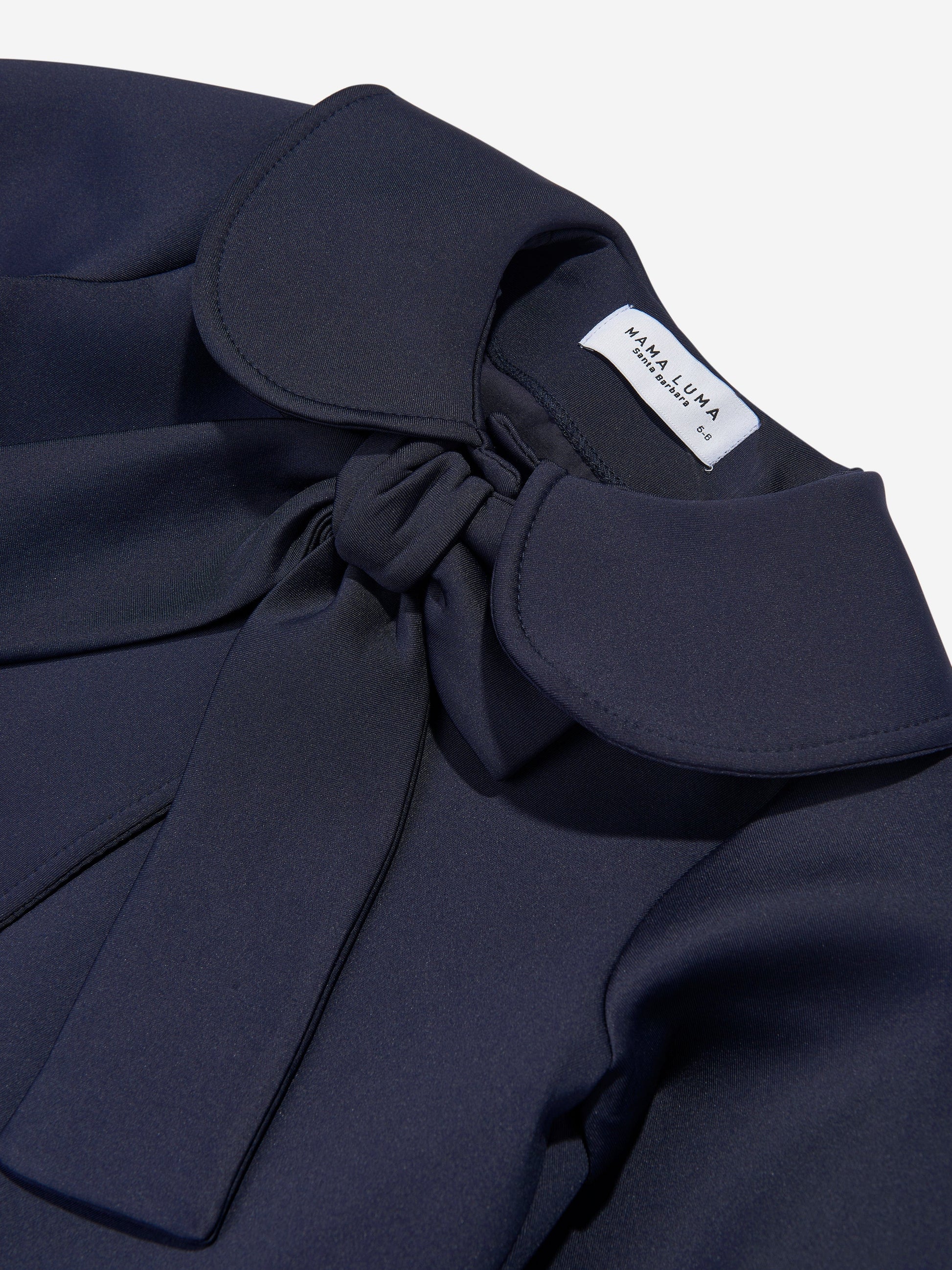 温馨提示:该商品下单后不支持取消订单,请您在购买前确认商品信息无误。商品如有缺货情况,订单会自动取消退款。预计收货时间为1至2周。 Introducing the Girls Bow Detailed Jacket in Navy by mama luma, an essential addition for the stylish young sophisticate this AW2024. It effortlessly combines elegance with playfulness in a deep, captivating blue. Key features include: