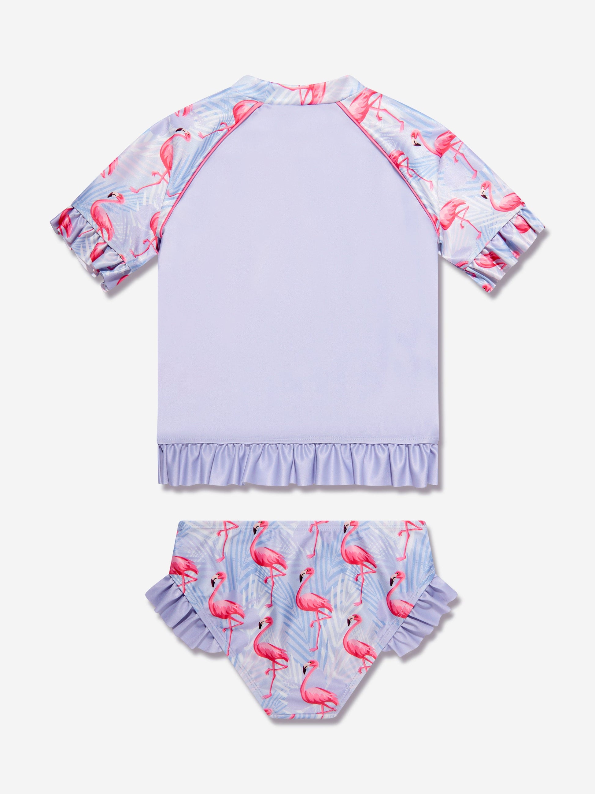Soli Swim 女童火烈鸟防晒衣和短裤(UPF50+)紫色