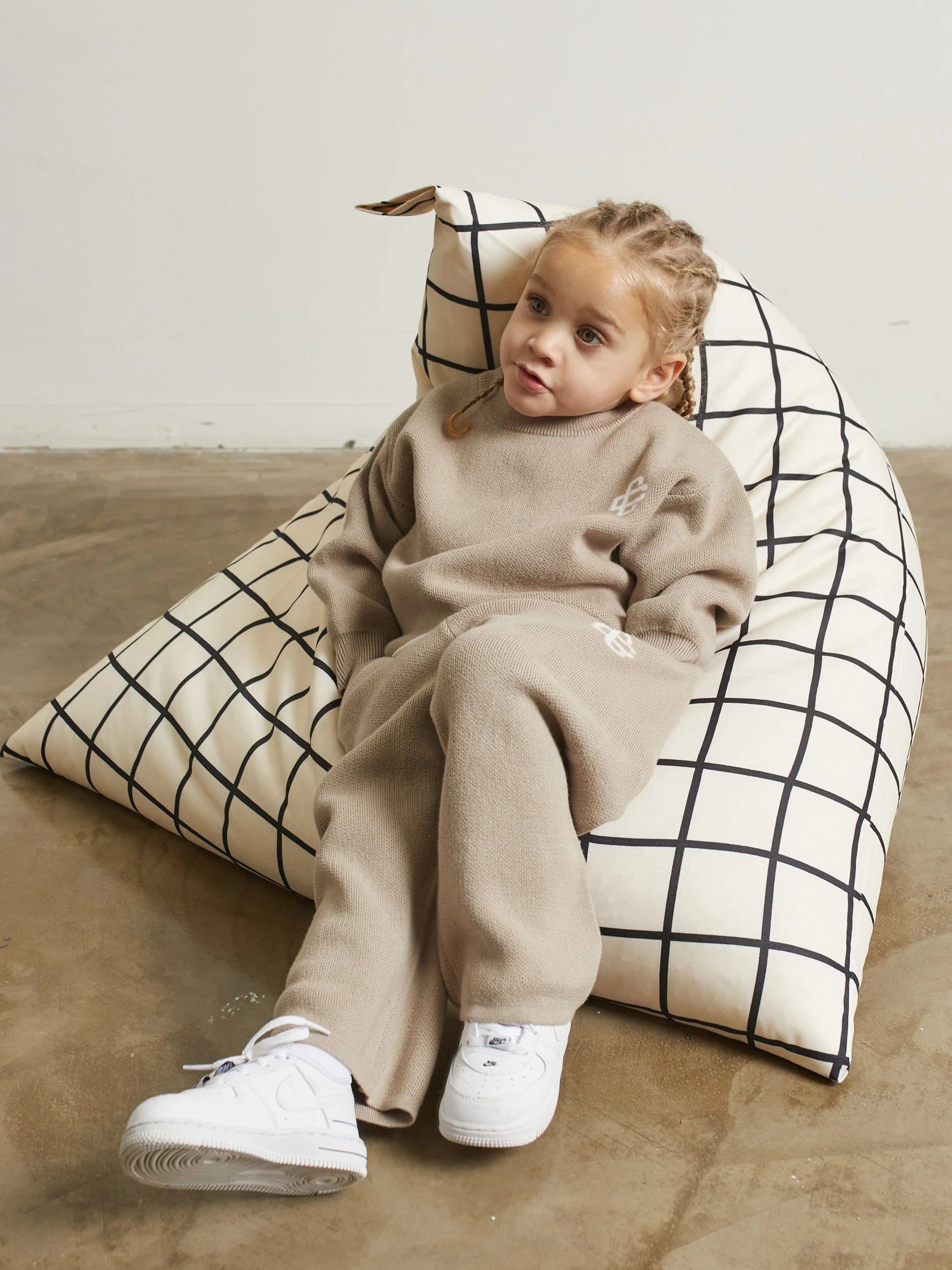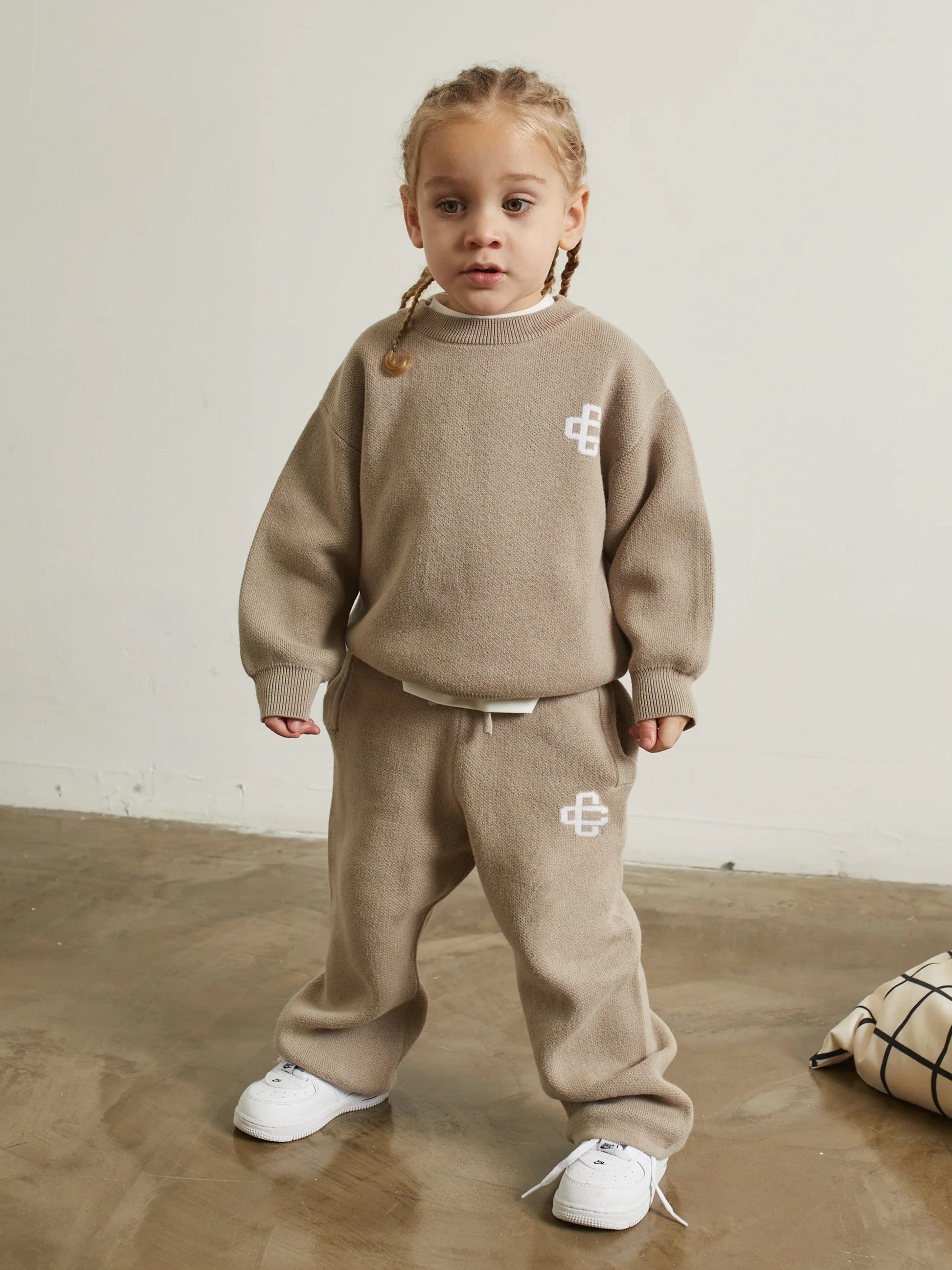 Couture Club 儿童针织徽章慢跑裤(米色)