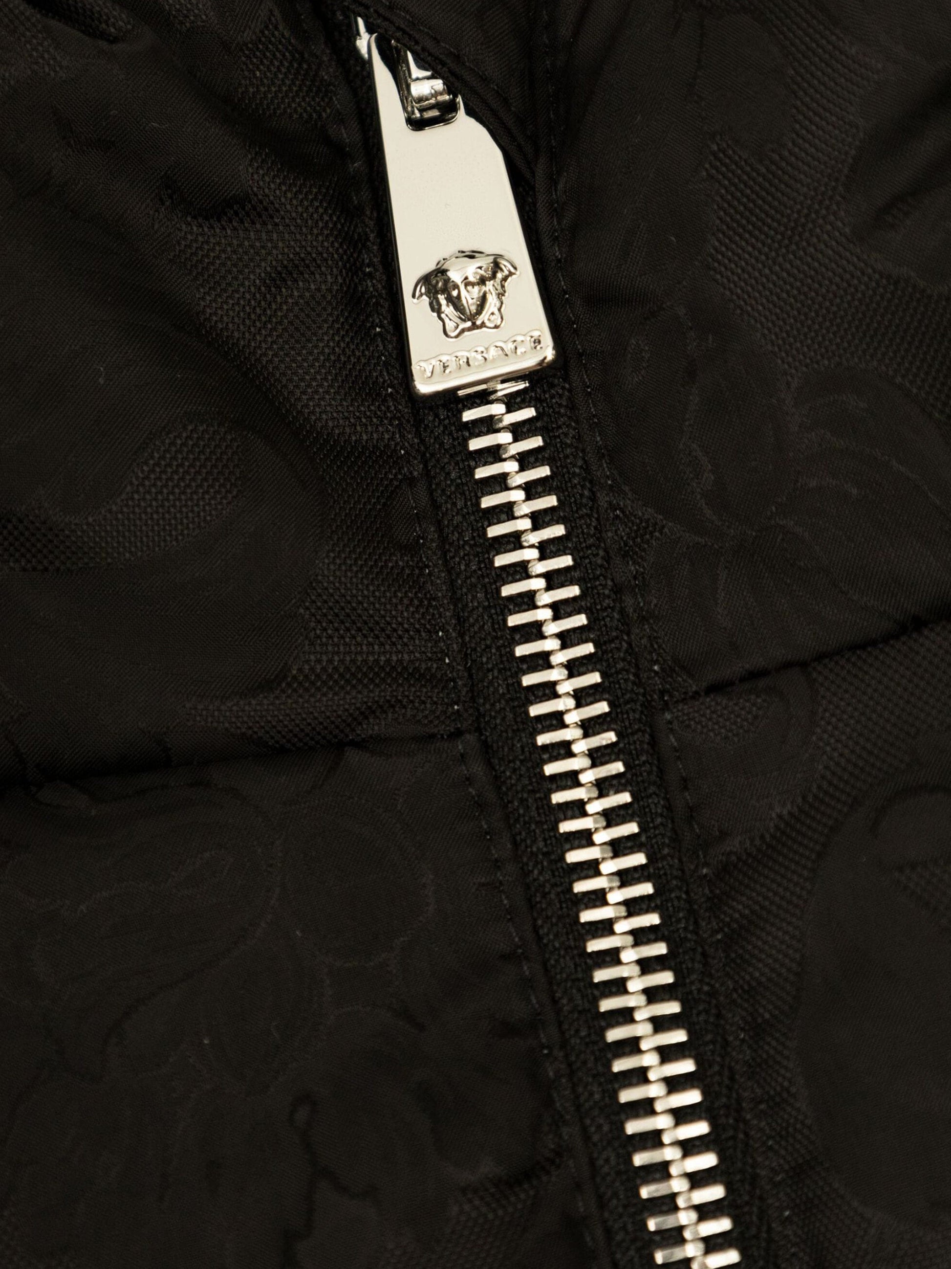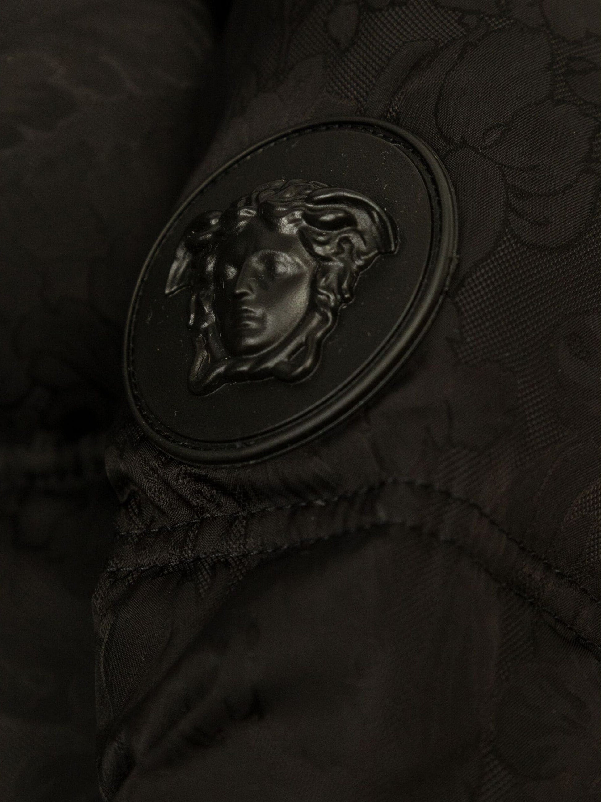 温馨提示:该商品下单后不支持取消订单,请您在购买前确认商品信息无误。商品如有缺货情况,订单会自动取消退款。预计收货时间为1至2周。 Versace envision bold, innovative abstracts in their beautifully crafted aesthetics. This black puffer jacket encapsulates the Italian label's passion for daring and unparalleled technology. Crafted with meticulous attention to detail, it boasts a subtle, tone-on-tone pattern with a distinctive motif set against the jacket's fabric. Providing optimal thermal efficiency via plush down filling, a high collar and hood. The metallic zipper is crowned with an ornate lion's head logo and a discreet emblem of a woman on the sleeve. Blending utility with luxury, they will be obessed.