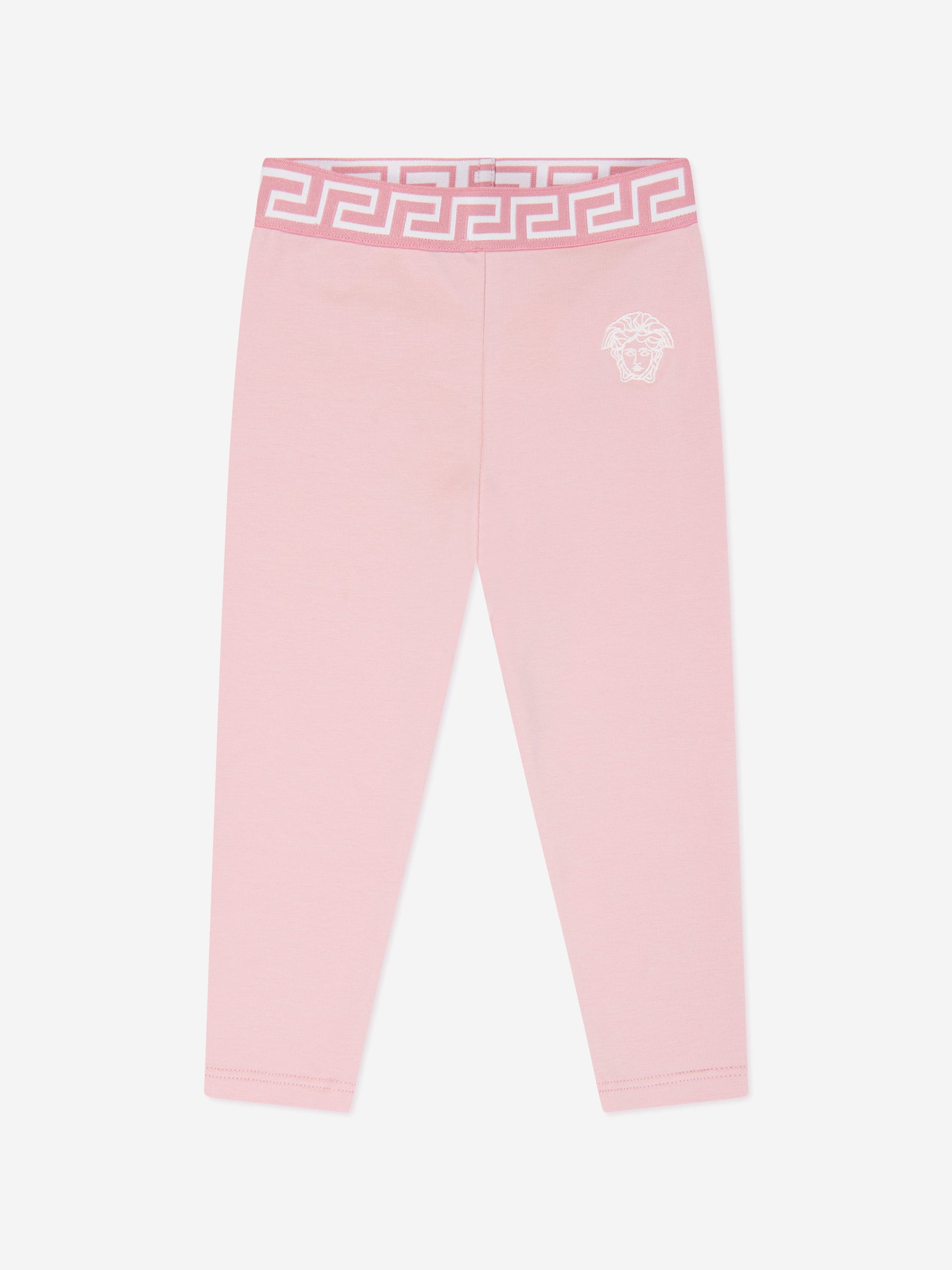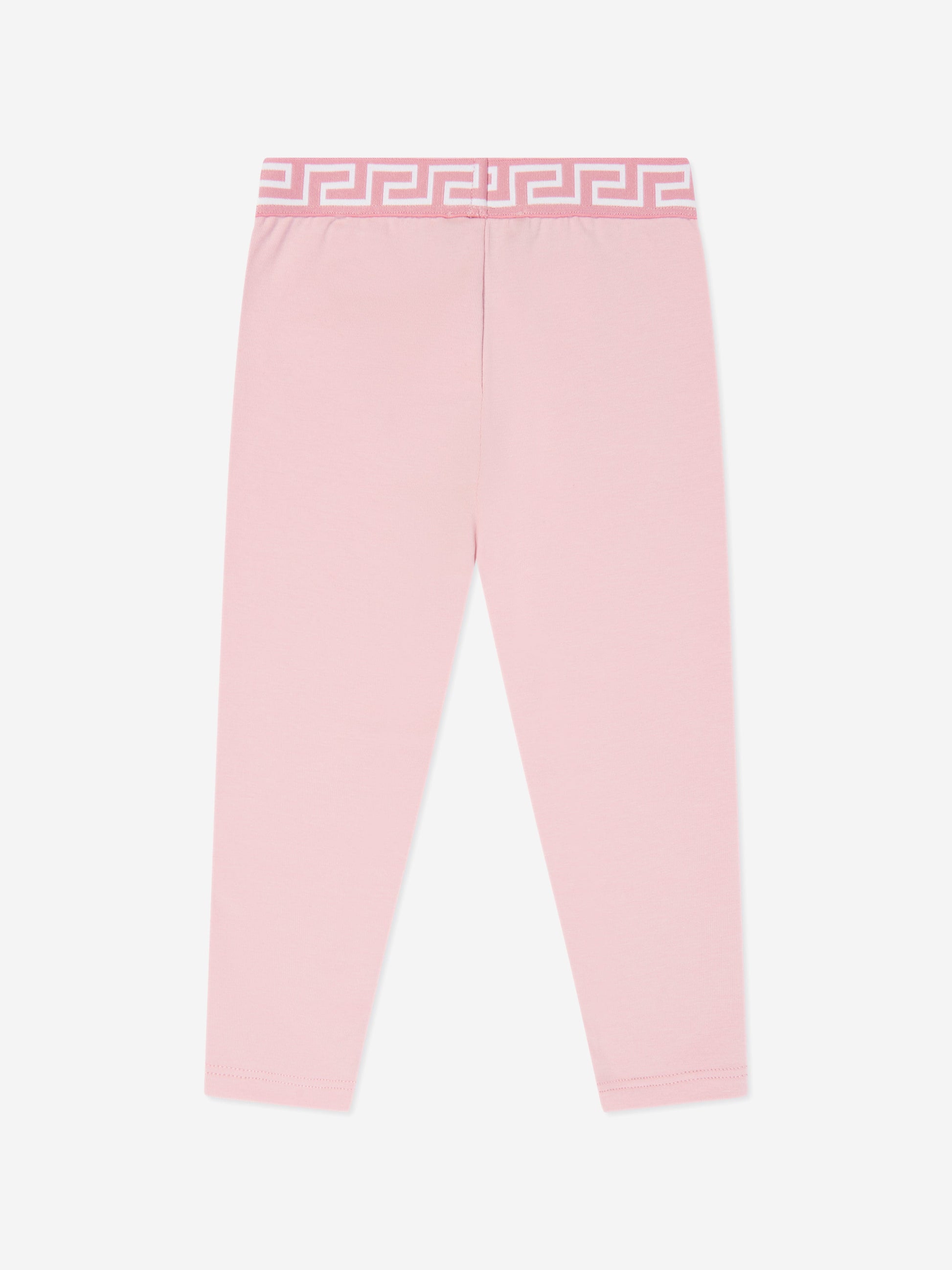 温馨提示:该商品下单后不支持取消订单,请您在购买前确认商品信息无误。商品如有缺货情况,订单会自动取消退款。预计收货时间为1至2周。 Versace project fine detailing into their opulent aesthetics. These baby girls pink leggings are reflective of the label's passion for innovation. An exquisite product epitomising the luxurious essence of it's Italian heritage. Crafted from soft cotton with a wide elastic waistband adorned with a geometric pattern in contrasting colours, serving for an impeccable fit.
