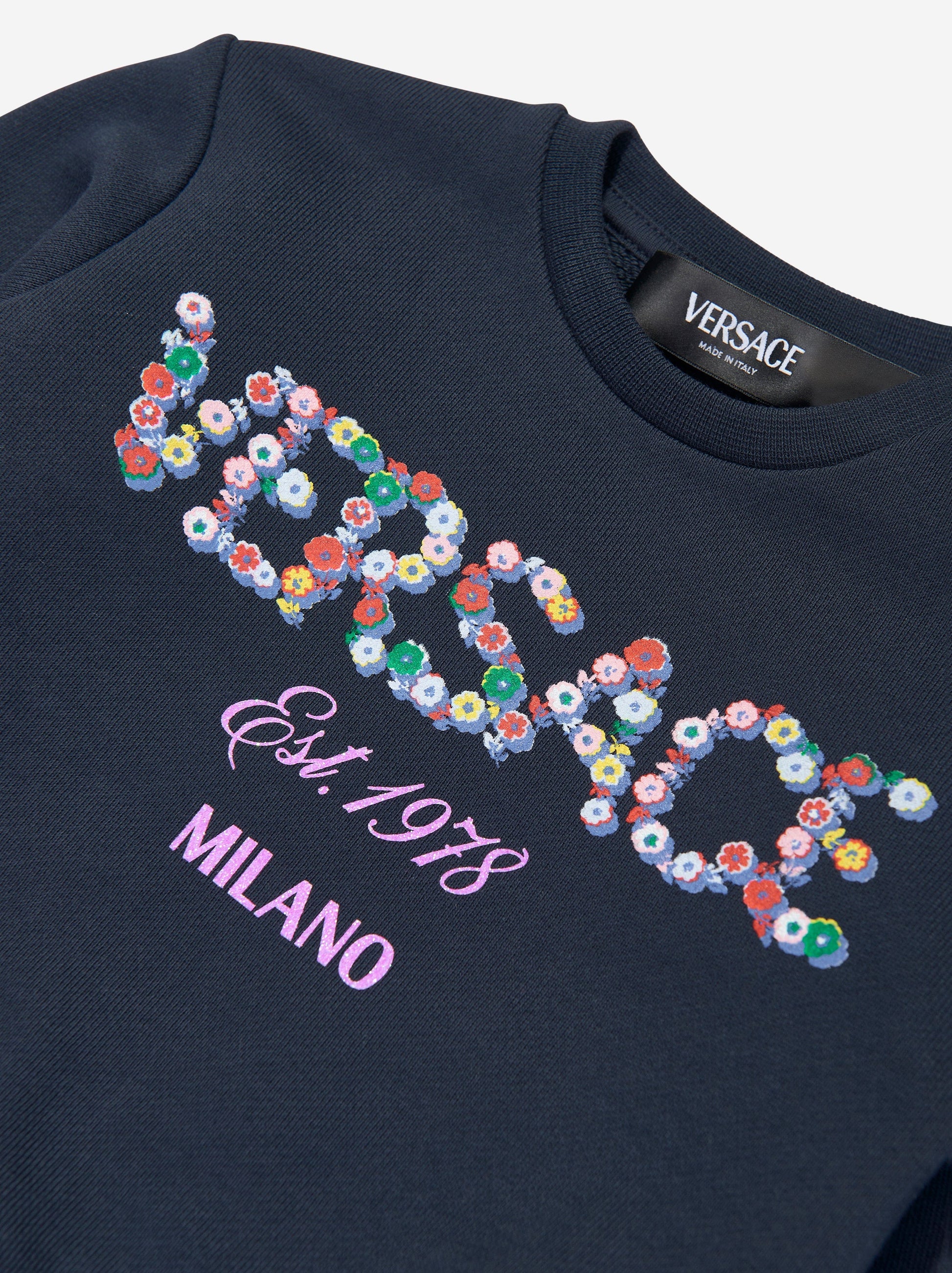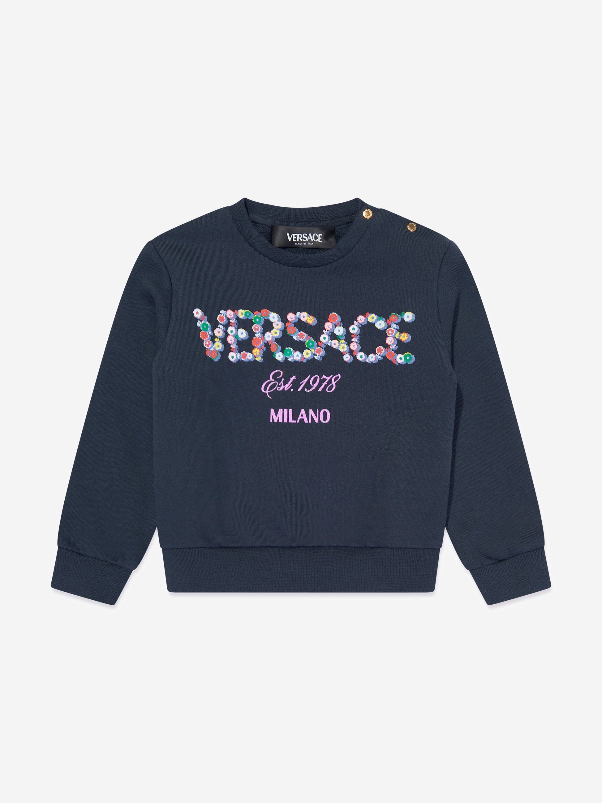 Versace 女婴花朵徽标运动衫(海军蓝)