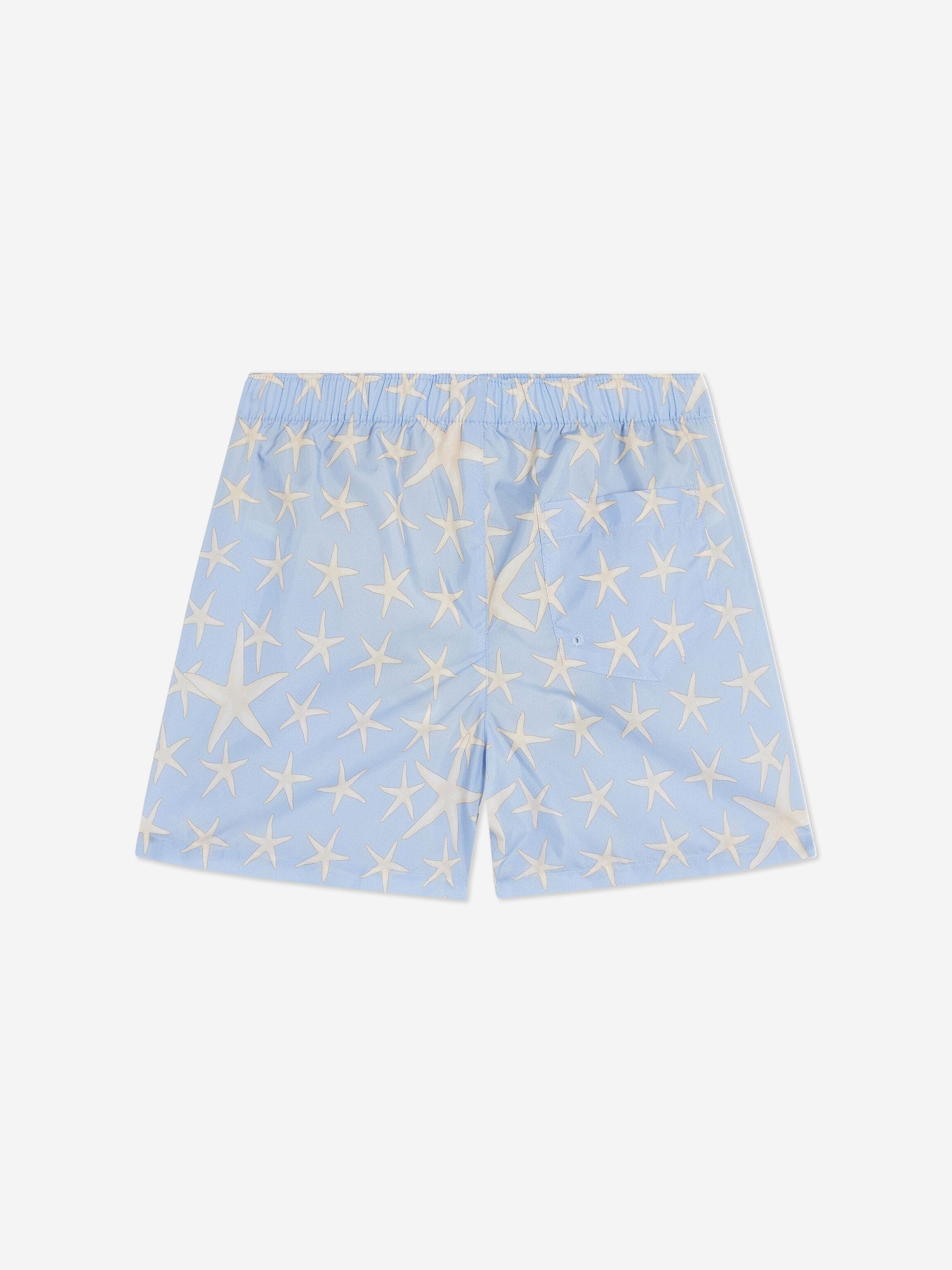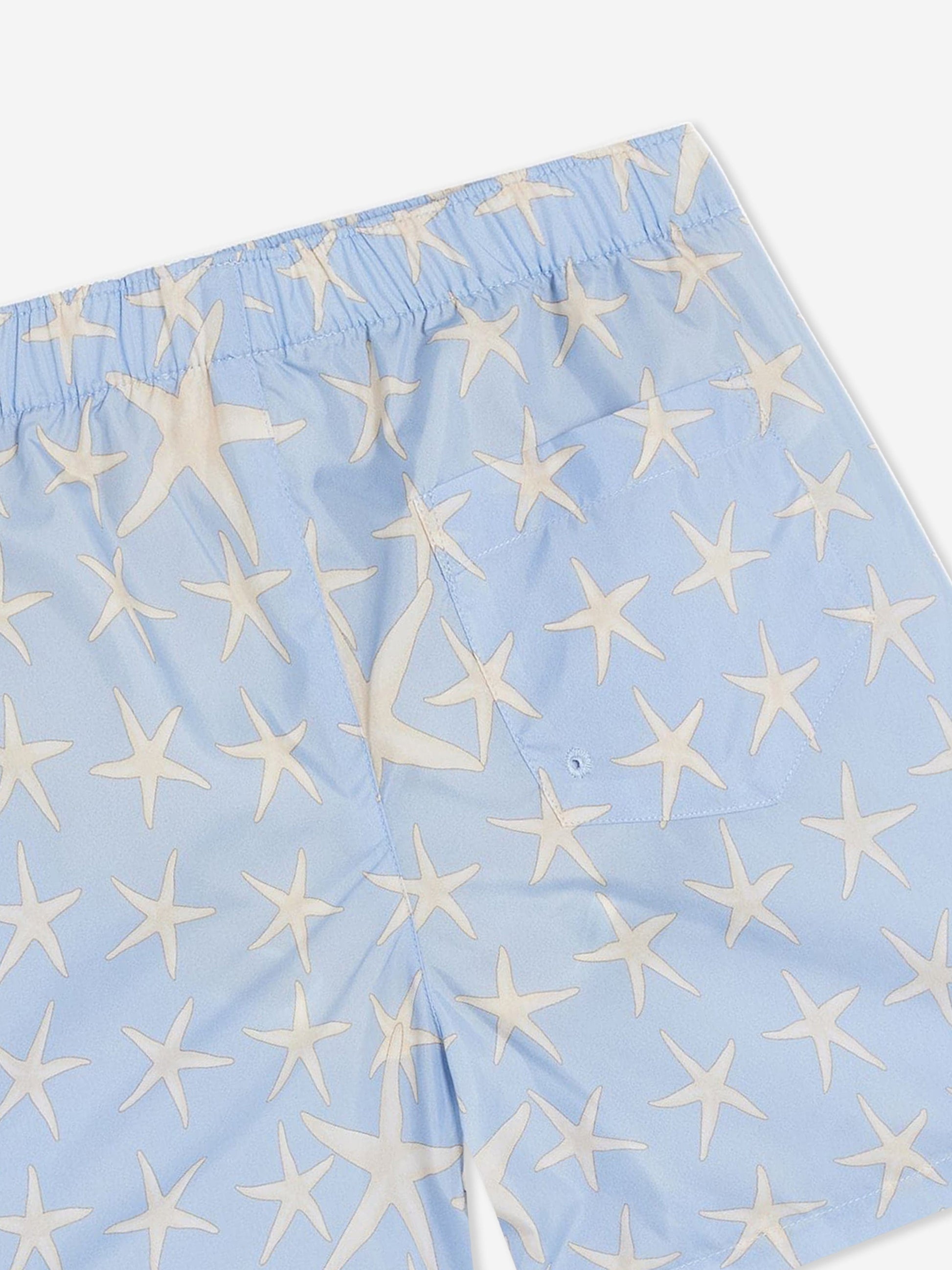 温馨提示:该商品下单后不支持取消订单,请您在购买前确认商品信息无误。商品如有缺货情况,订单会自动取消退款。预计收货时间为1至2周。 Introducing the Boys Starfish Swim Shorts in Blue by Versace, a luxurious staple for AW2024, blending Italian craftsmanship with fun, seaside flair. Key features include: